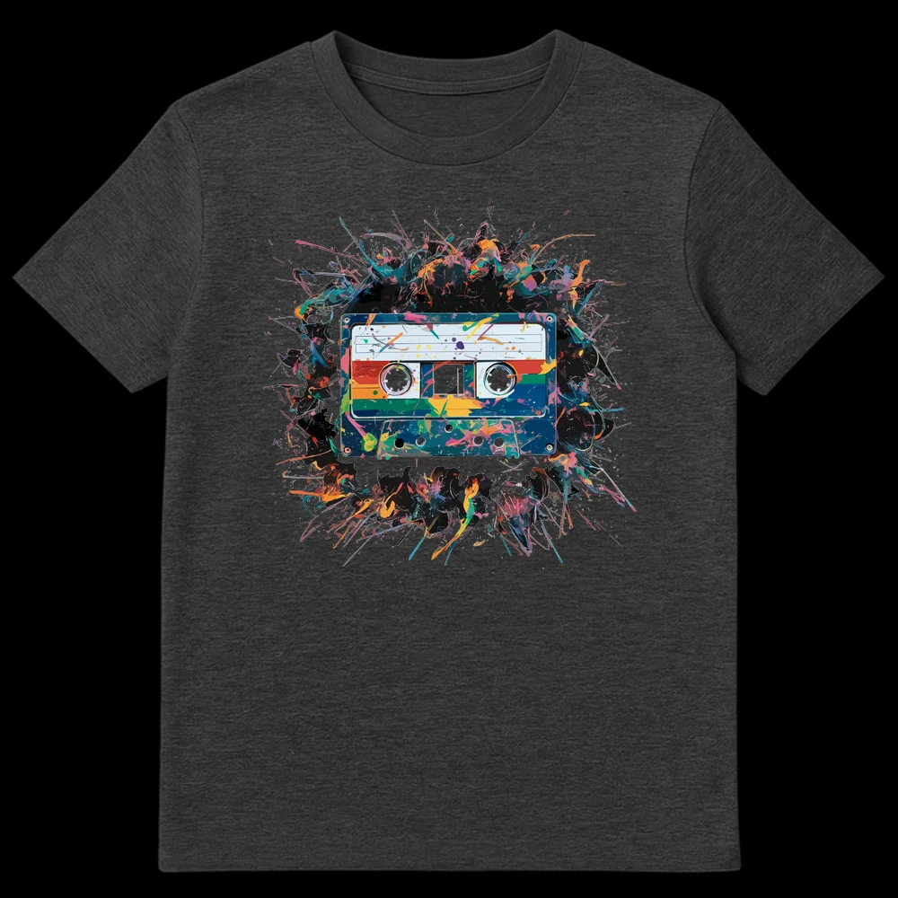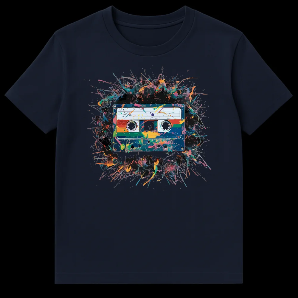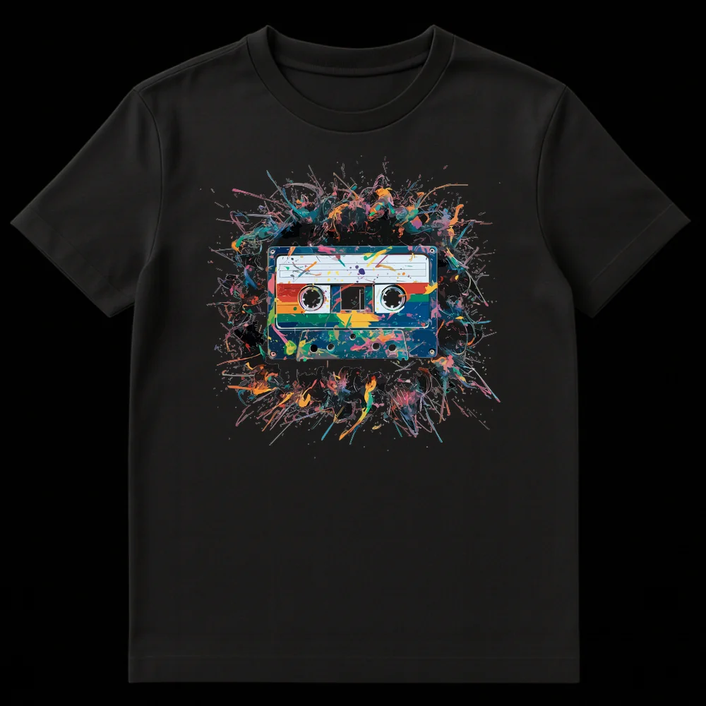 Celebrate the analog era with this vibrant, exploding cassette tape design. This tee captures the dynamic energy of music with a chaotic burst of multi-colored paint splatters, evoking a strong sense of 80s/90s nostalgia. It’s a perfect gift for music lovers, DJs, or anyone who appreciates iconic retro culture and artistic expression.