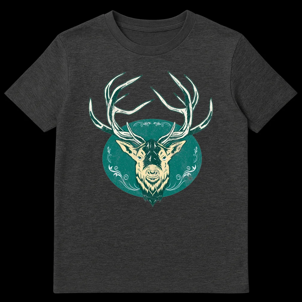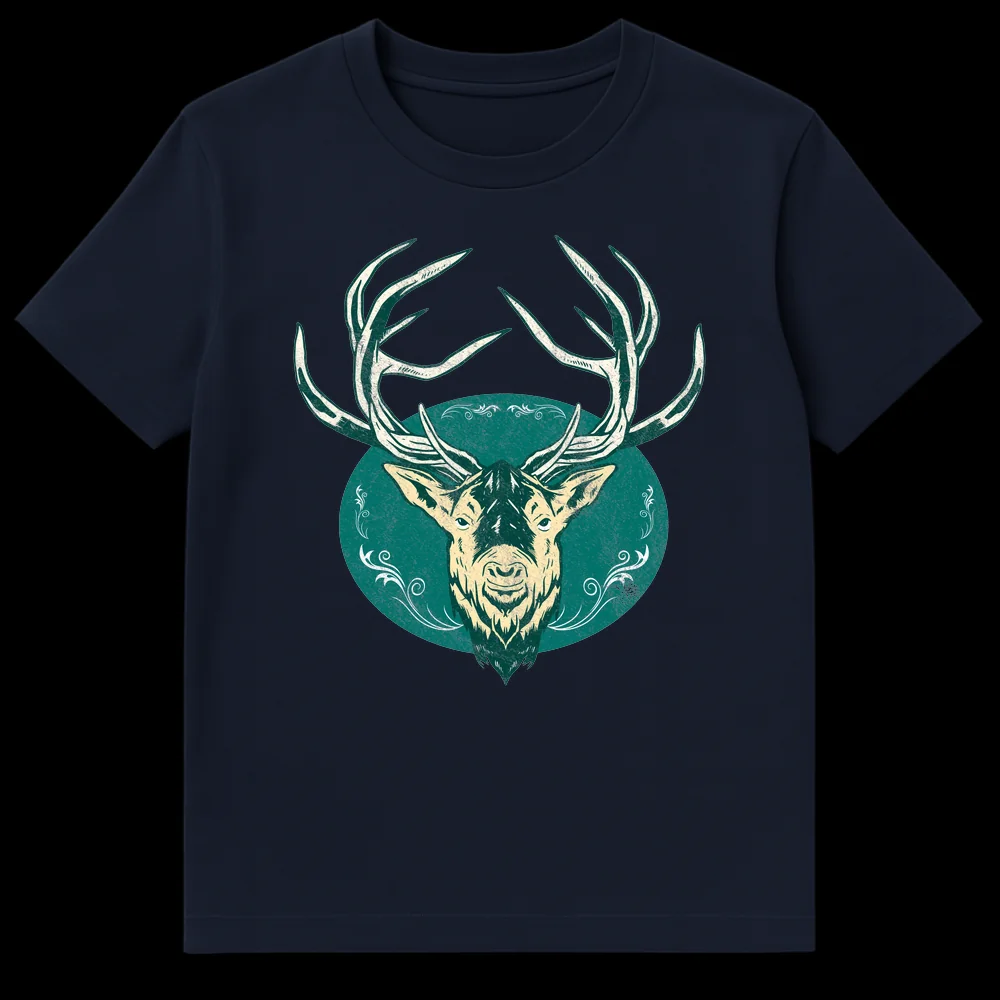 Channel the spirit of the wilderness with our premium Majestic Stag Head T-Shirt. This design features a powerful stag rendered in a captivating vintage, distressed illustrative style, reminiscent of classic woodcut prints. The rich dark teal and off-white palette on a deep black background highlights the intricate antlers and stately profile, framed by elegant, symmetrical flourishes. Symbolizing nobility, strength, and a deep connection to nature, this tee is more than just clothing; it’s a statement. Perfect for those who love wildlife, enjoy outdoor adventures, or gravitate towards rustic, heritage-inspired fashion. It makes an exceptional gift for a husband, father, or friend who cherishes the majestic beauty of the forest and a timeless aesthetic.