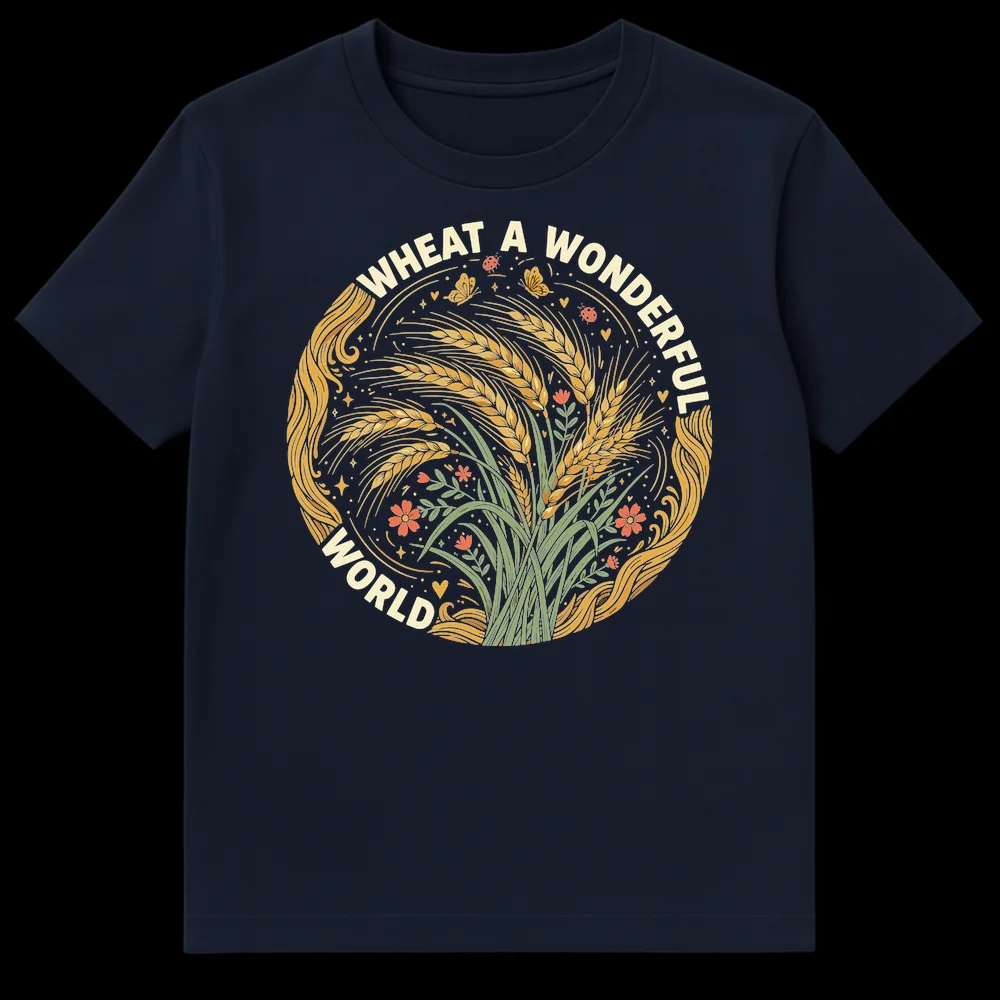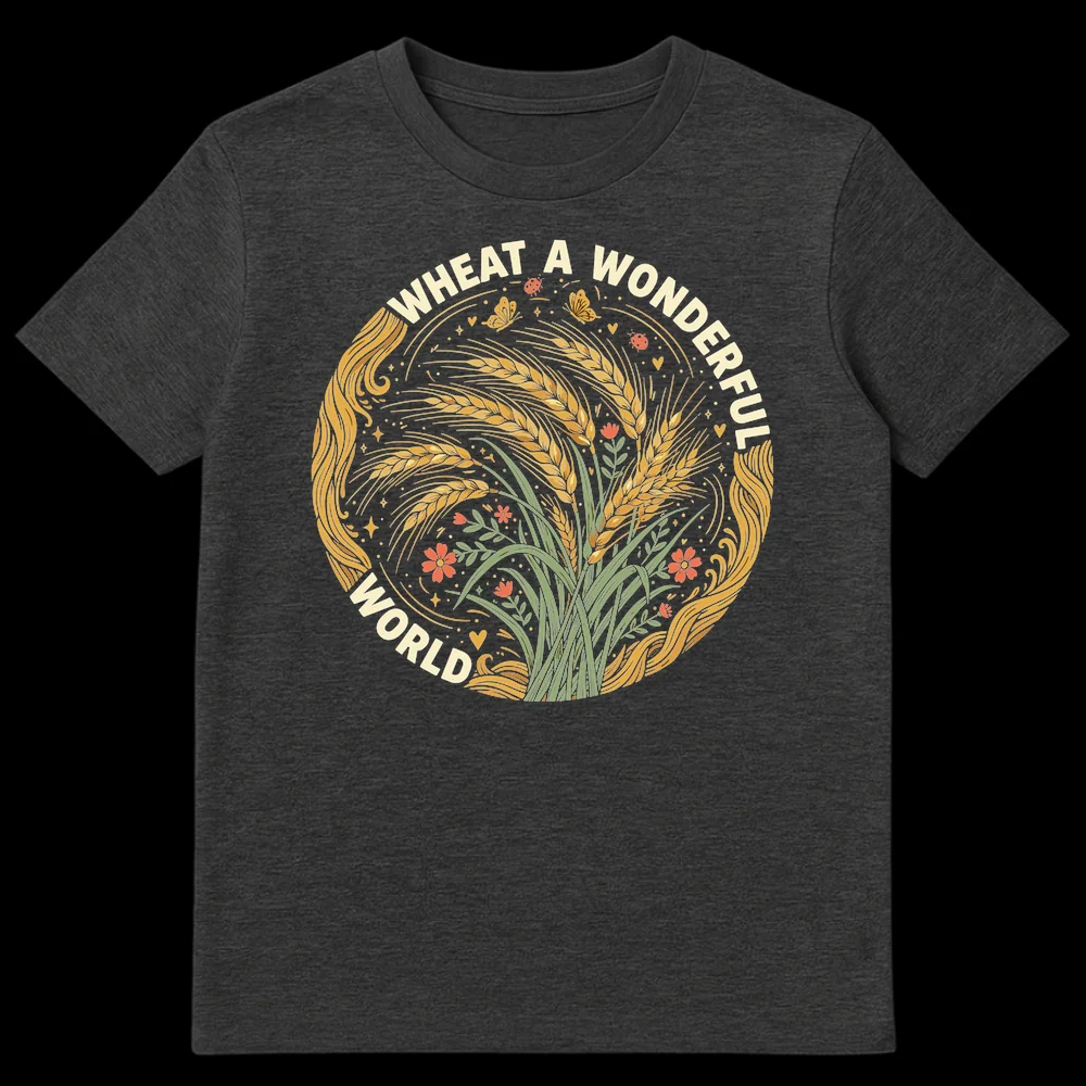 Embrace the beauty of the natural world with our “WHEAT A WONDERFUL WORLD” t-shirt. This design features a clever agricultural pun, transforming a classic song title into an homage to golden wheat stalks and the idyllic countryside. Perfect for farmers, gardeners, or anyone who appreciates wholesome humor and the bounty of the earth, celebrating nature’s simple joys.