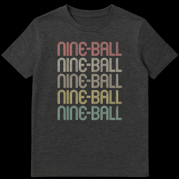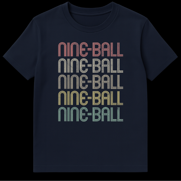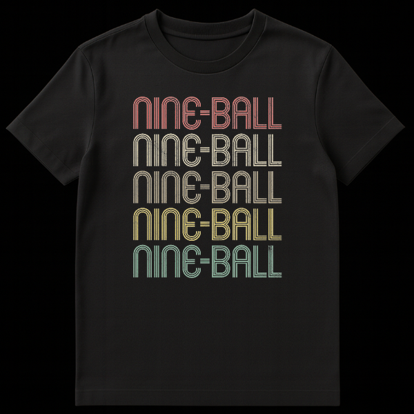 Celebrate your passion for cue sports with this vintage-inspired Nine-Ball t-shirt. Featuring the iconic game name repeated five times in a distressed, multi-lined typography, it’s a direct nod to your favorite billiard game. Perfect for players and fans, this design captures a nostalgic vibe for anyone dedicated to the felt.