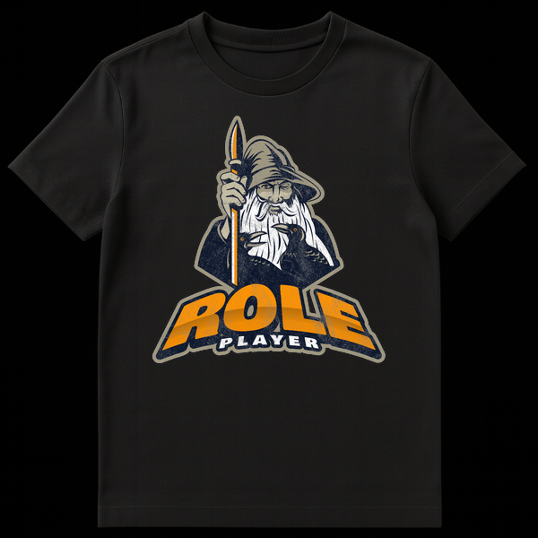Channel the power of Valhalla during your next gaming session with this striking Odin Role Player design. This graphic captures the intensity of the Norse Allfather in a bold, distressed mascot style typical of competitive esports branding. Odin stands ready with his legendary spear, Gungnir, flanked by his loyal ravens, Huginn and Muninn, symbolizing thought and memory—essential traits for any strategist. The rugged, grunge texture adds a battle-hardened vintage feel, while the vibrant orange and navy color palette ensures you stand out. Whether you are the dungeon master, the tank, or the raid leader, this shirt establishes your authority. It makes an exceptional gift for lovers of Viking lore, fantasy RPG enthusiasts, and competitive gamers looking for unique team apparel.