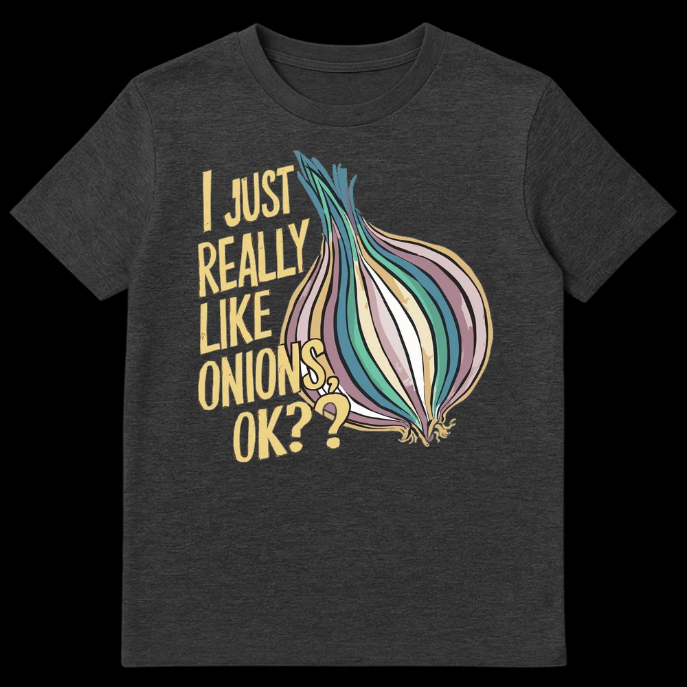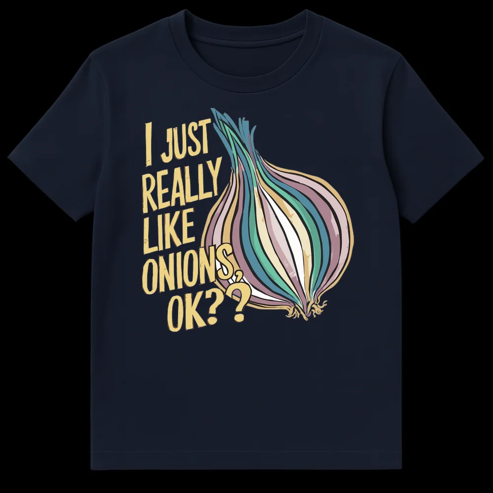 Declare your undeniable passion with our “I JUST REALLY LIKE ONIONS OK??” t-shirt. This design features bold, distressed text alongside a vibrant, stylized onion illustration, perfectly capturing an unapologetic love for the pungent, flavorful vegetable. It’s a humorous and relatable statement piece for anyone who truly adores onions, making it a fantastic gift for foodies, home cooks, or anyone with strong culinary preferences.