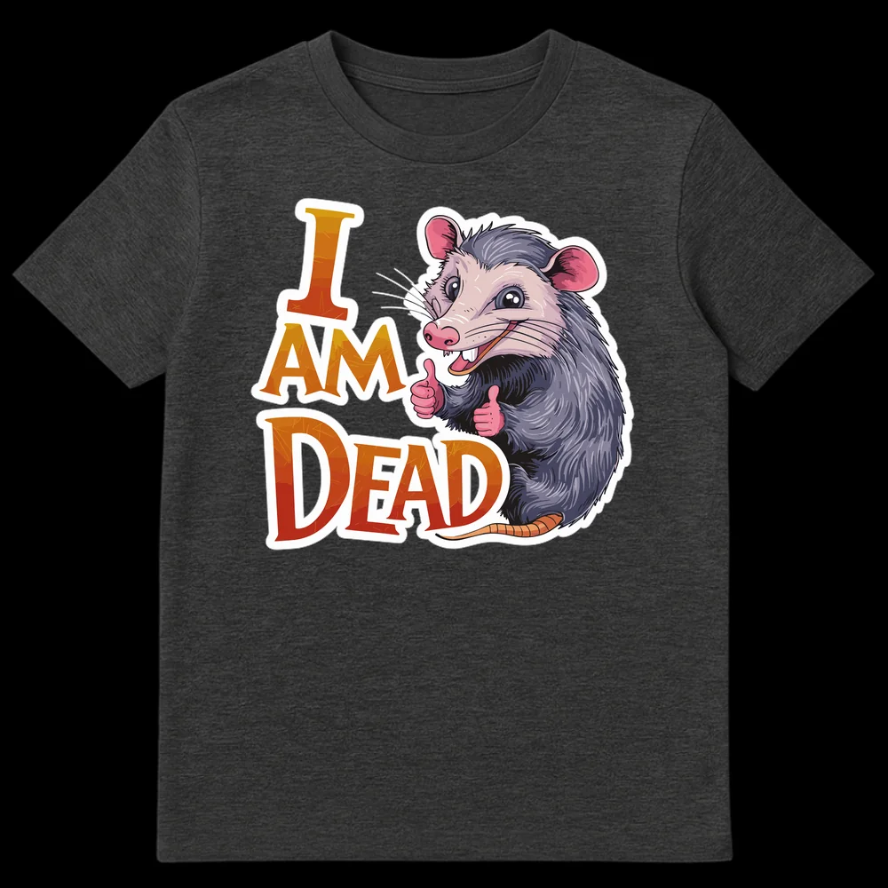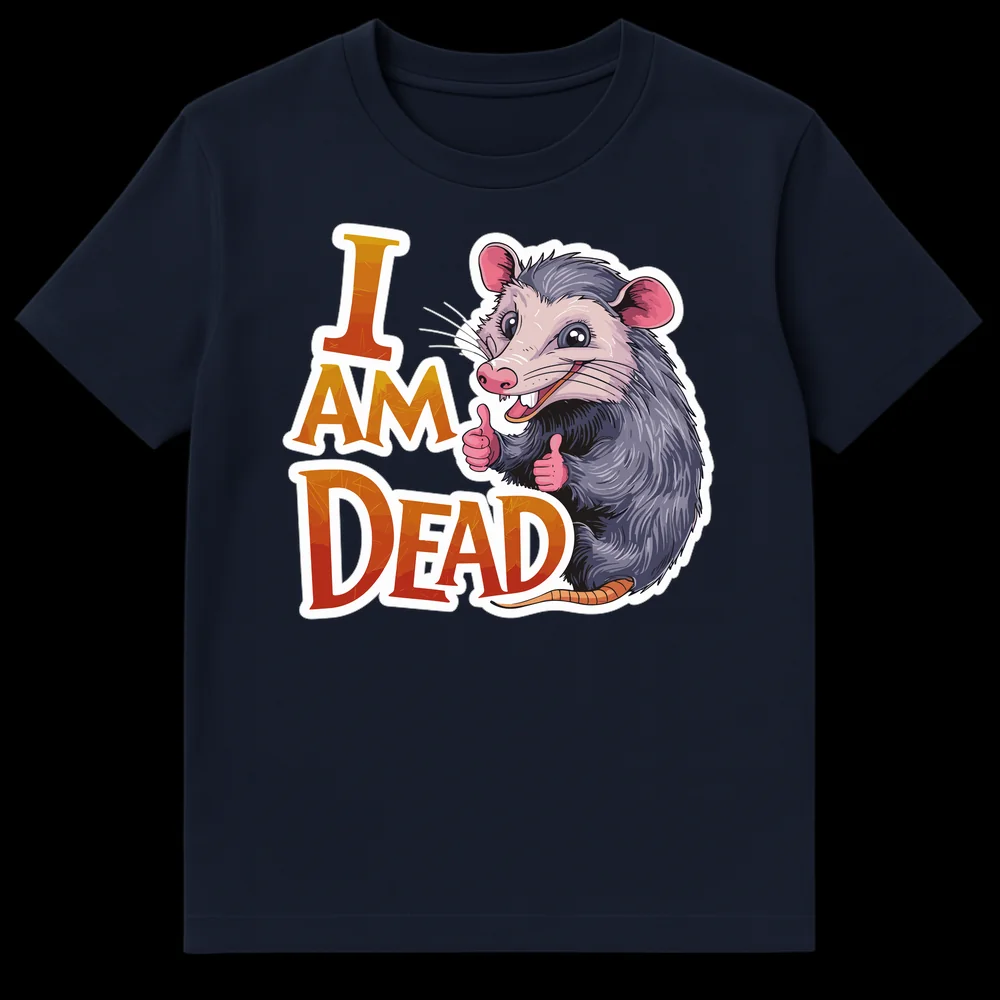 Embrace your quirky side with our “I AM DEAD” Opossum T-Shirt. This design features a cheerful opossum giving a triumphant thumbs-up, humorously referencing its famous playing dead defense mechanism. It’s the perfect gift for animal lovers, wildlife enthusiasts, or anyone who appreciates a clever, self-aware joke.