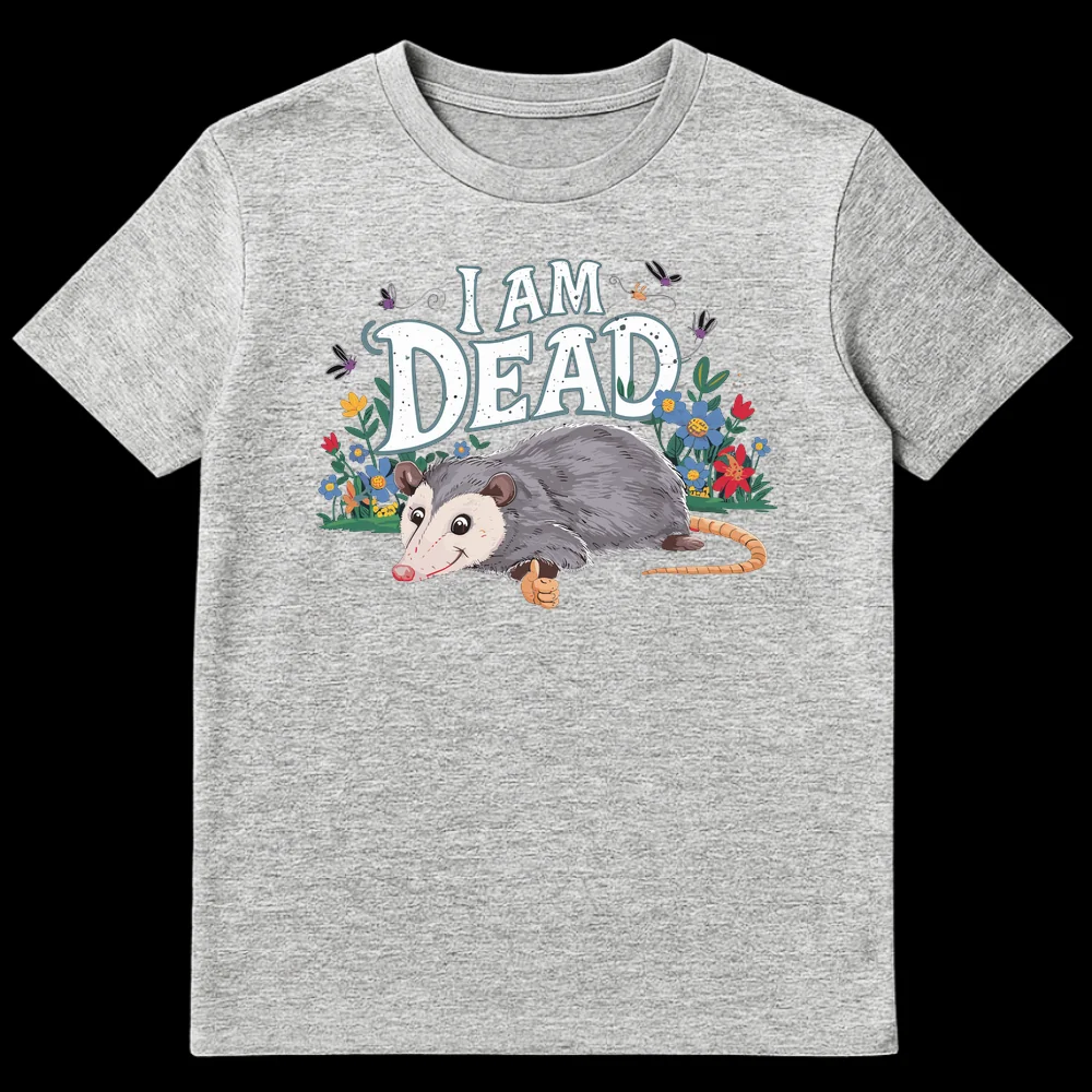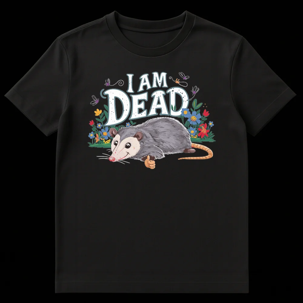 Embrace the ultimate dramatic flair with our “I AM DEAD” opossum t-shirt. This design features a cheerful opossum giving a thumbs-up, perfectly capturing its famous playing dead defense mechanism with a humorous twist. It’s a fantastic conversation starter and a perfect gift for animal lovers, pun enthusiasts, or anyone with a dry, self-deprecating wit.