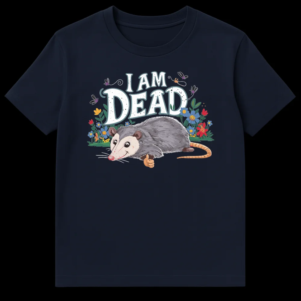Unleash your inner drama queen (or king!) with this incredibly charming and witty “I AM DEAD” t-shirt. Our unique design showcases a whimsical, anthropomorphic opossum, complete with an expressive smile and a cheeky thumbs-up gesture, embodying its iconic ‘playing dead’ act. Surrounded by vibrant, nature-inspired flora and playful dragonflies, this tee blends a rustic, organic aesthetic with modern, script-style typography for an utterly delightful look. It’s not just a shirt; it’s a statement for those who appreciate animal-related humor, clever puns, and a touch of sarcastic charm. Ideal for opossum enthusiasts, nature lovers, or anyone who identifies with the feeling of being dramatically exhausted, this shirt is designed to spark smiles and conversations. Give the gift of unique, lighthearted humor to friends, family, or treat yourself to this irresistibly cute and quirky apparel.