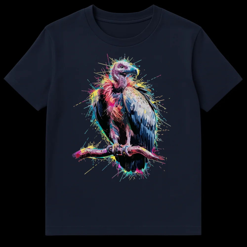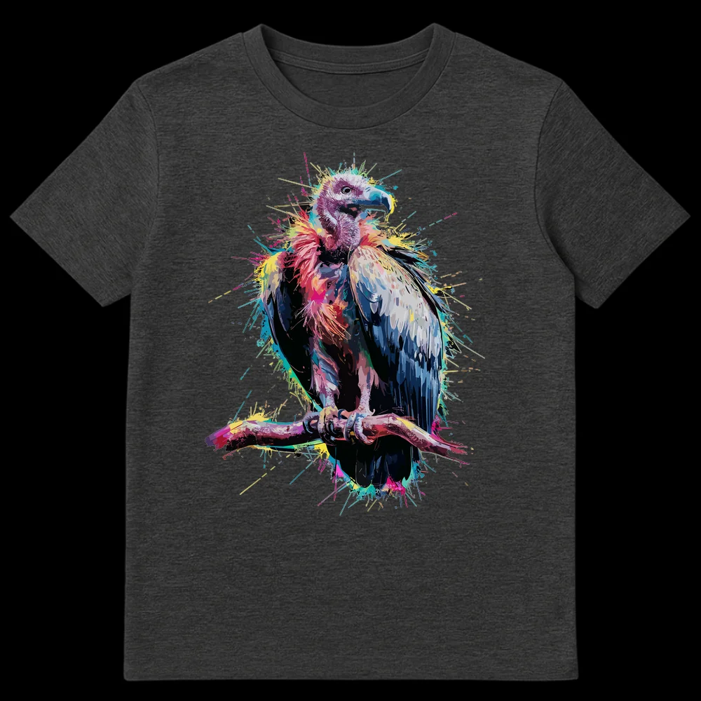 Transform your style with our captivating Vibrant Vulture Bird T-Shirt. This design features a majestic griffon vulture rendered in an electrifying splatter art style, bursting with a rainbow of neon accents against a deep black background. It’s a striking tribute to misunderstood wildlife, perfect for bird watchers, art lovers, or anyone who appreciates bold, expressive animal art and unique statement pieces.