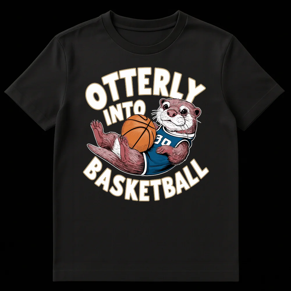 Dive into fun with our “OTTERLY INTO BASKETBALL” t-shirt! This design features an adorable anthropomorphic otter in a jersey, cleverly playing on the phrase “utterly into basketball.” It’s the perfect gift for any basketball enthusiast, otter fan, or anyone who appreciates a good pun.