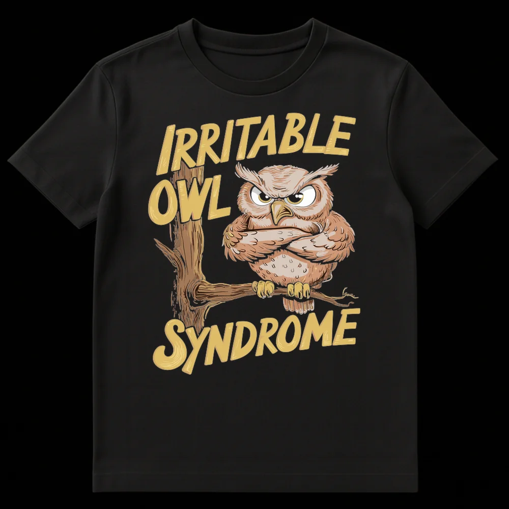 Embrace your inner grump with our “Irritable Owl Syndrome” t-shirt! This clever pun plays on a common medical term, featuring a hilariously disgruntled owl with crossed wings, perfectly capturing that perpetually annoyed mood. It’s a fantastic conversation starter and a relatable statement piece for anyone who appreciates witty animal humor or knows a lovable grump.