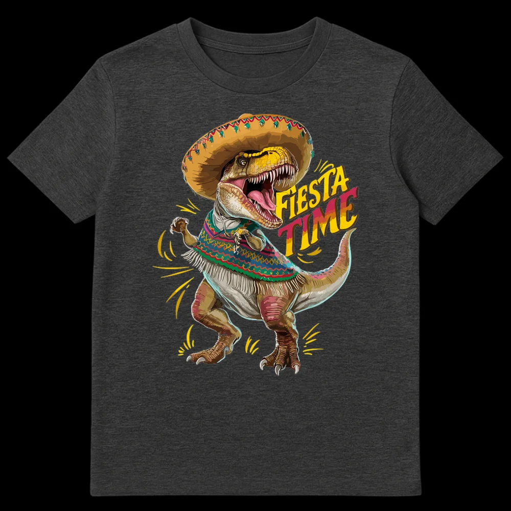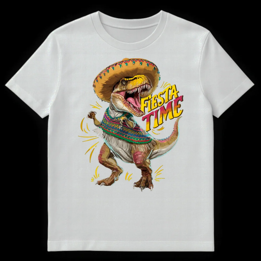 Get ready for some serious fun with our exclusive “Fiesta Time” T-Rex T-shirt! This vibrant and detailed design showcases a dynamic T-Rex, surprisingly decked out in a traditional sombrero and colorful serape, celebrating with open-mouthed enthusiasm. The phrase “FIESTA TIME” boldly declares the festive mood, perfectly capturing the shirt’s playful spirit. It’s a brilliant blend of prehistoric power and celebratory joy, creating a truly unique and laugh-out-loud visual gag. This shirt is a perfect conversation starter, ideal for anyone who loves dinosaurs, appreciates quirky humor, or enjoys Mexican cultural festivities. Stand out at your next party, festival, or casual outing. It’s the ultimate gift for dinosaur enthusiasts, Cinco de Mayo celebrators, or friends with a great sense of humor and a love for the unexpected.