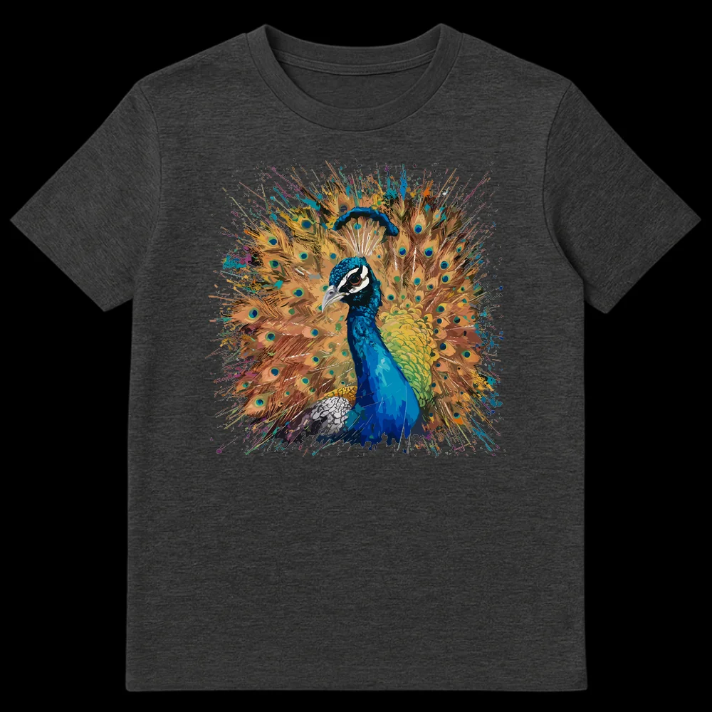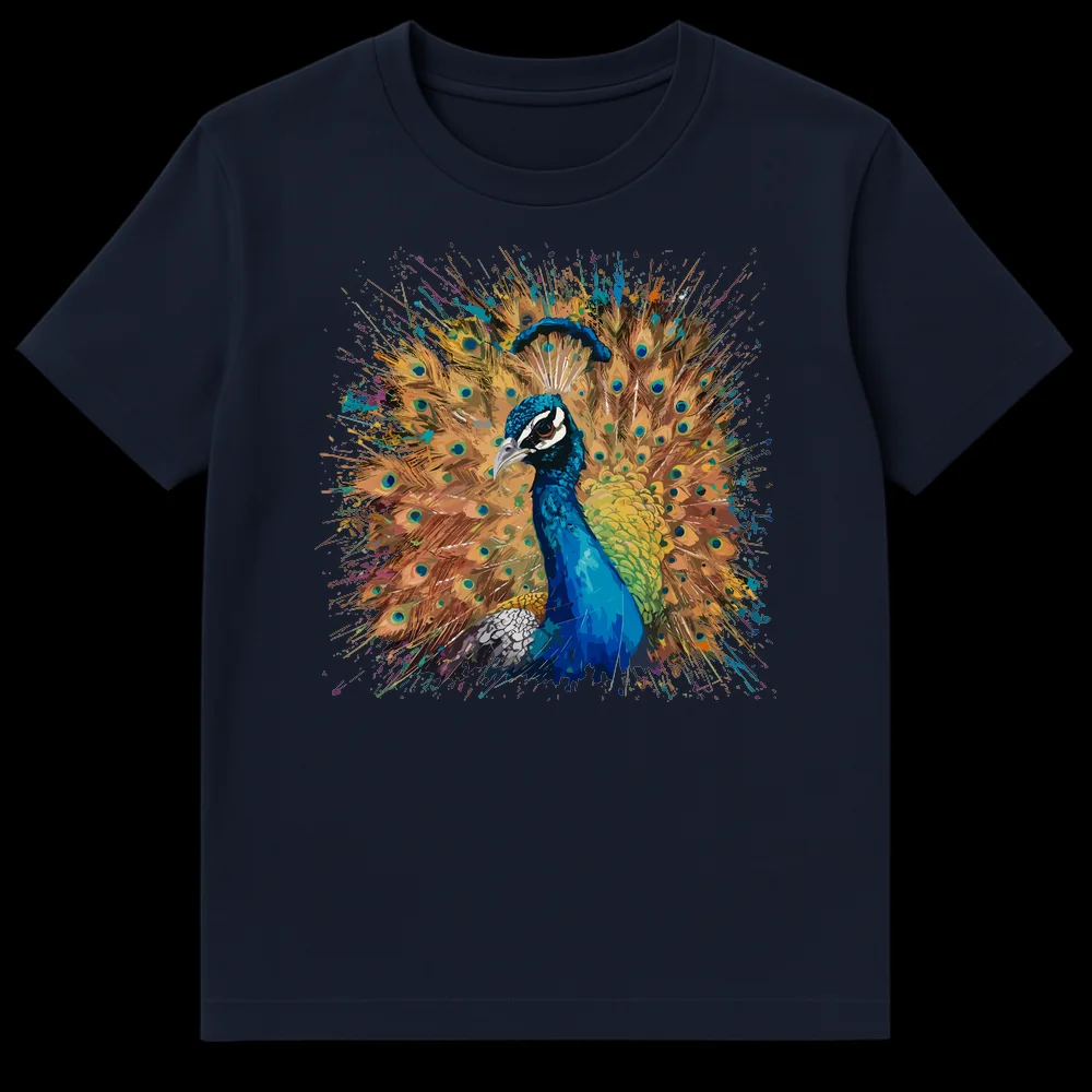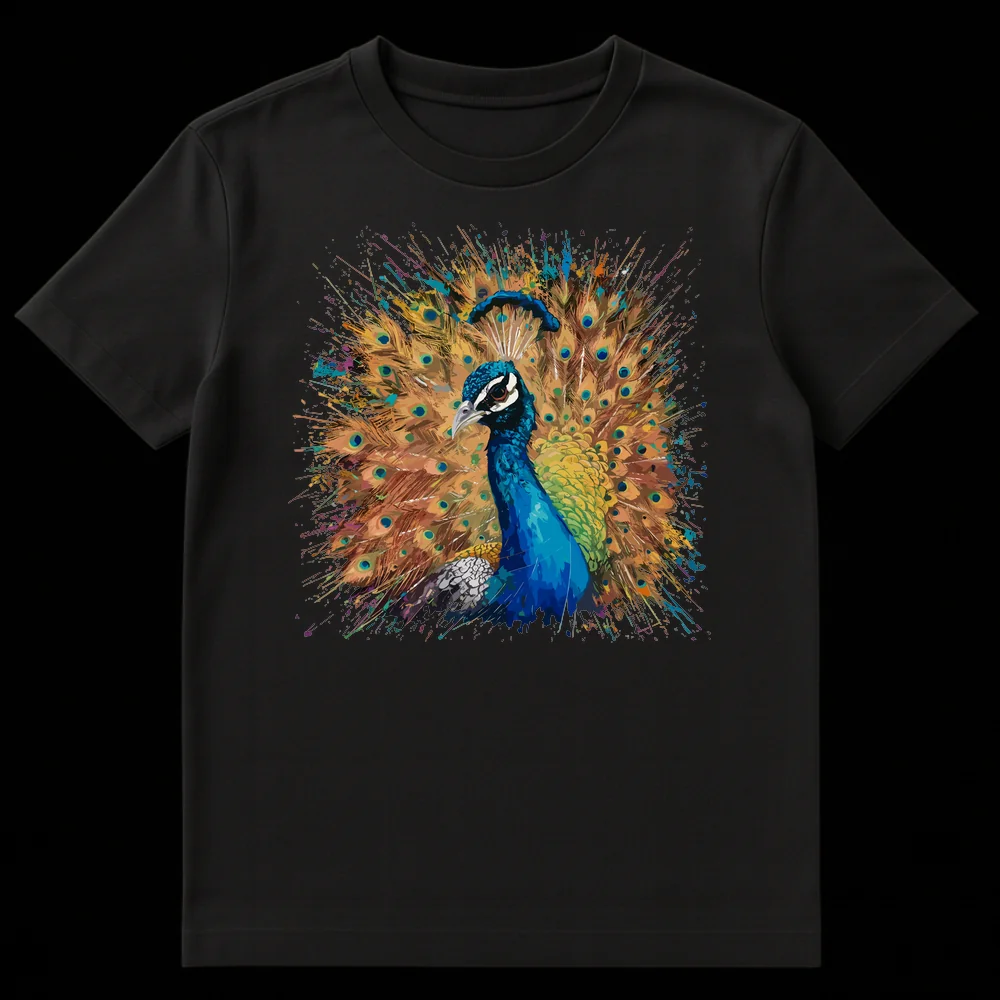 Unleash your vibrant spirit with this stunning peacock t-shirt, showcasing a majestic peacock amidst an explosion of colorful paint splatters. This eye-catching design celebrates natural beauty with a dynamic, modern artistic flair. It’s a perfect gift for bird enthusiasts, art lovers, or anyone who appreciates bold, expressive animal imagery.