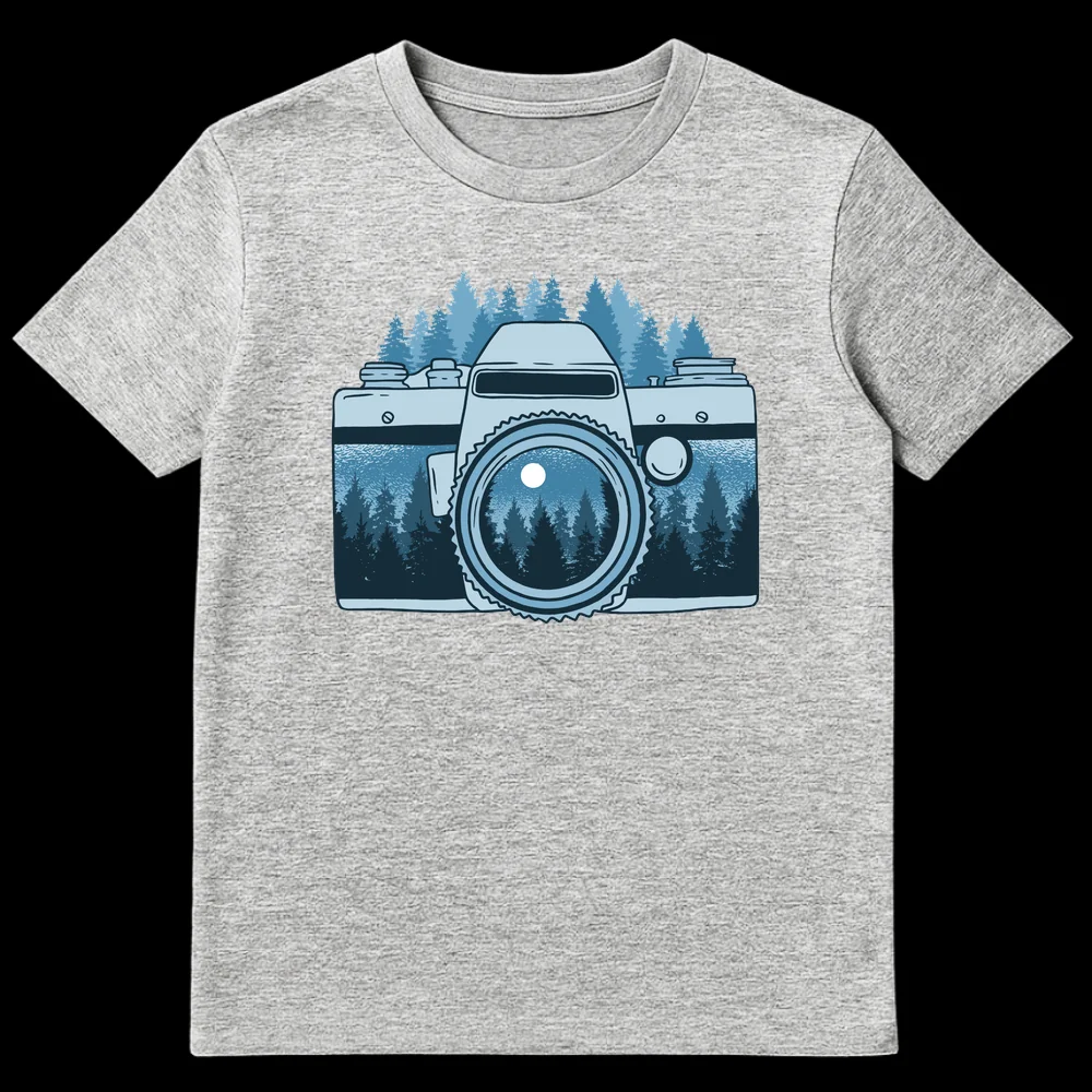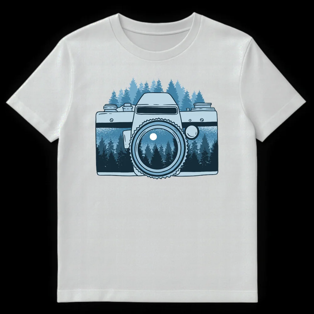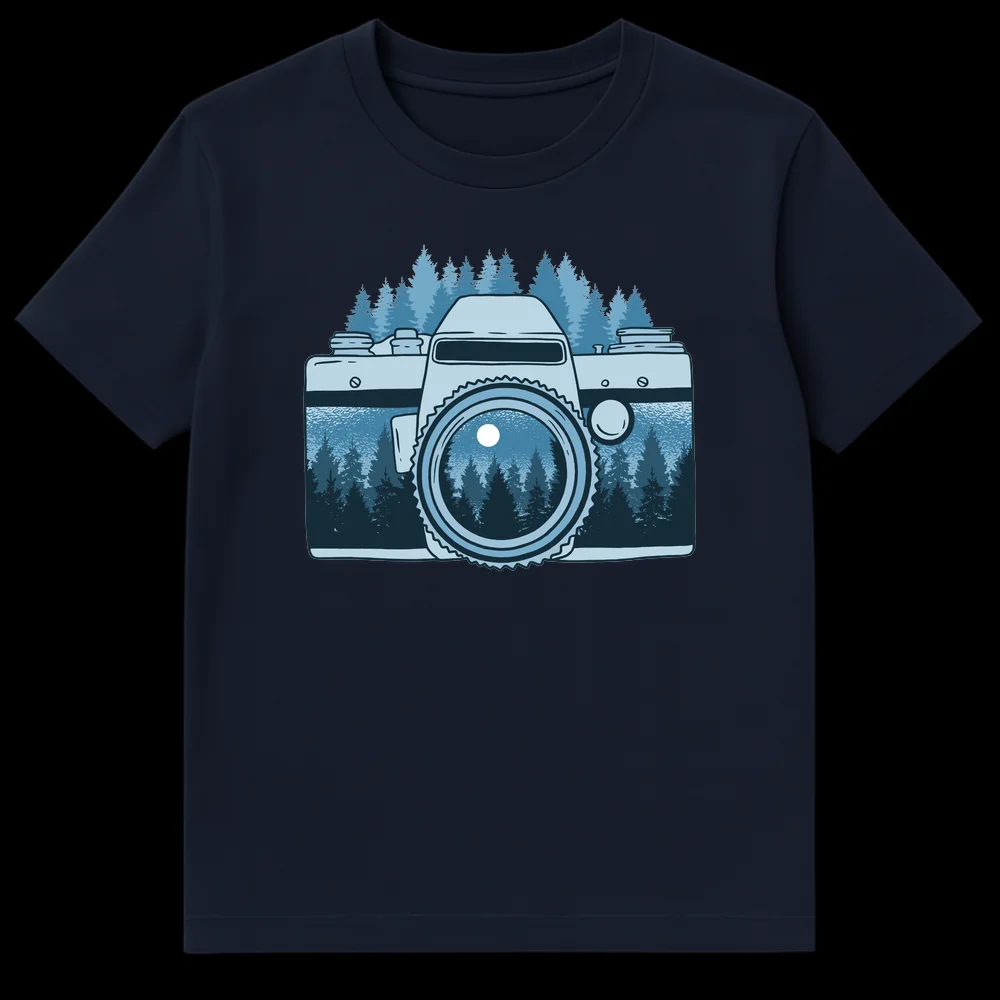 Celebrate the passion for capturing the wild with our unique Moonlit Forest Camera T-Shirt. This design masterfully integrates a serene, moonlit forest landscape directly into a classic vintage camera lens, making it a visual metaphor for seeing nature through photography. It’s a perfect blend of adventure and artistry, ideal for photographers, nature enthusiasts, and outdoor adventurers.