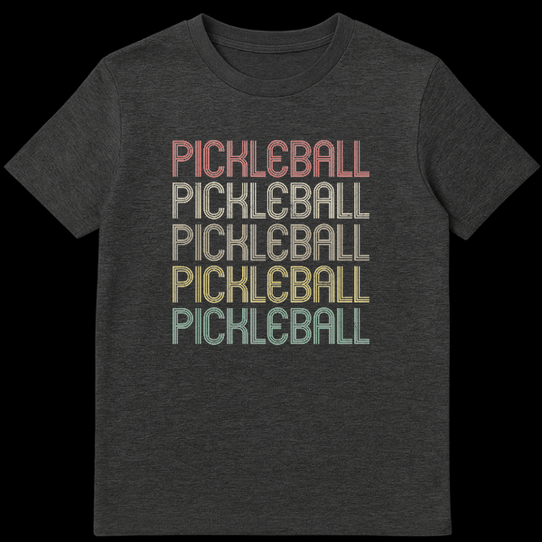 Declare your passion for the fastest-growing sport with this retro-inspired Pickleball t-shirt. The design features the word “PICKLEBALL” repeated five times in a distressed, vintage typography, creating a bold statement in earthy tones. It’s a perfect gift for any dedicated Pickleball player, enthusiast, or anyone who lives and breathes the game, showcasing their love for the court.
