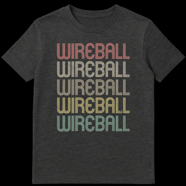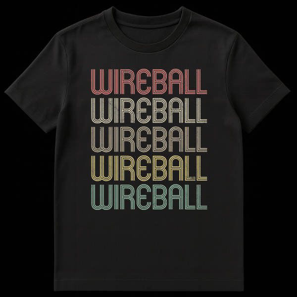 Embrace the vintage vibe with our unique “WIREBALL” stacked graphic t-shirt. This design showcases the intriguing term five times in a classic 70s-80s striped, distressed font, creating a cool, faded aesthetic. The muted color palette on a bold black background enhances its retro appeal, perfect for those who appreciate old-school arcade charm or electronic circuit humor. If you’re a pinball wizard, an electrical engineering enthusiast, or simply love obscure, stylish references, this shirt speaks your language. It’s an ideal conversation starter and a thoughtful gift for any pinball player, arcade collector, or tech hobbyist who appreciates a blend of nostalgia and distinctive style.