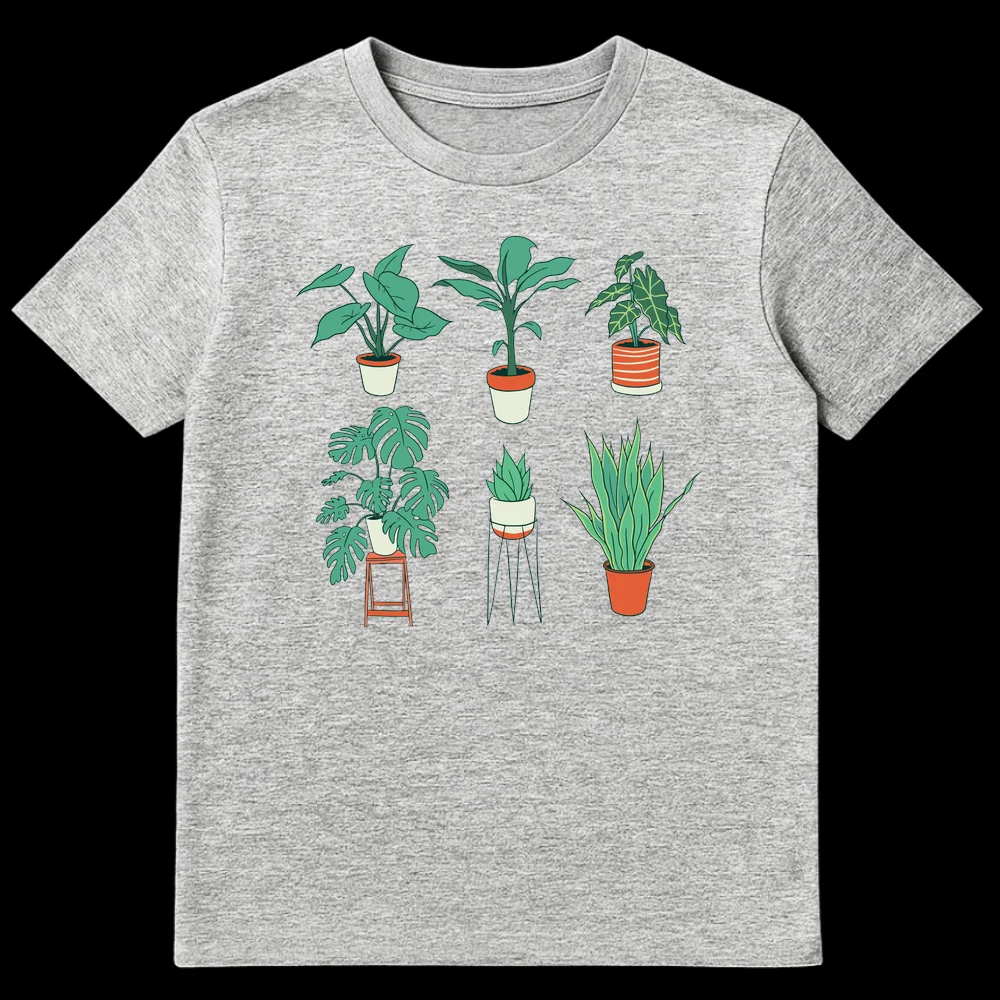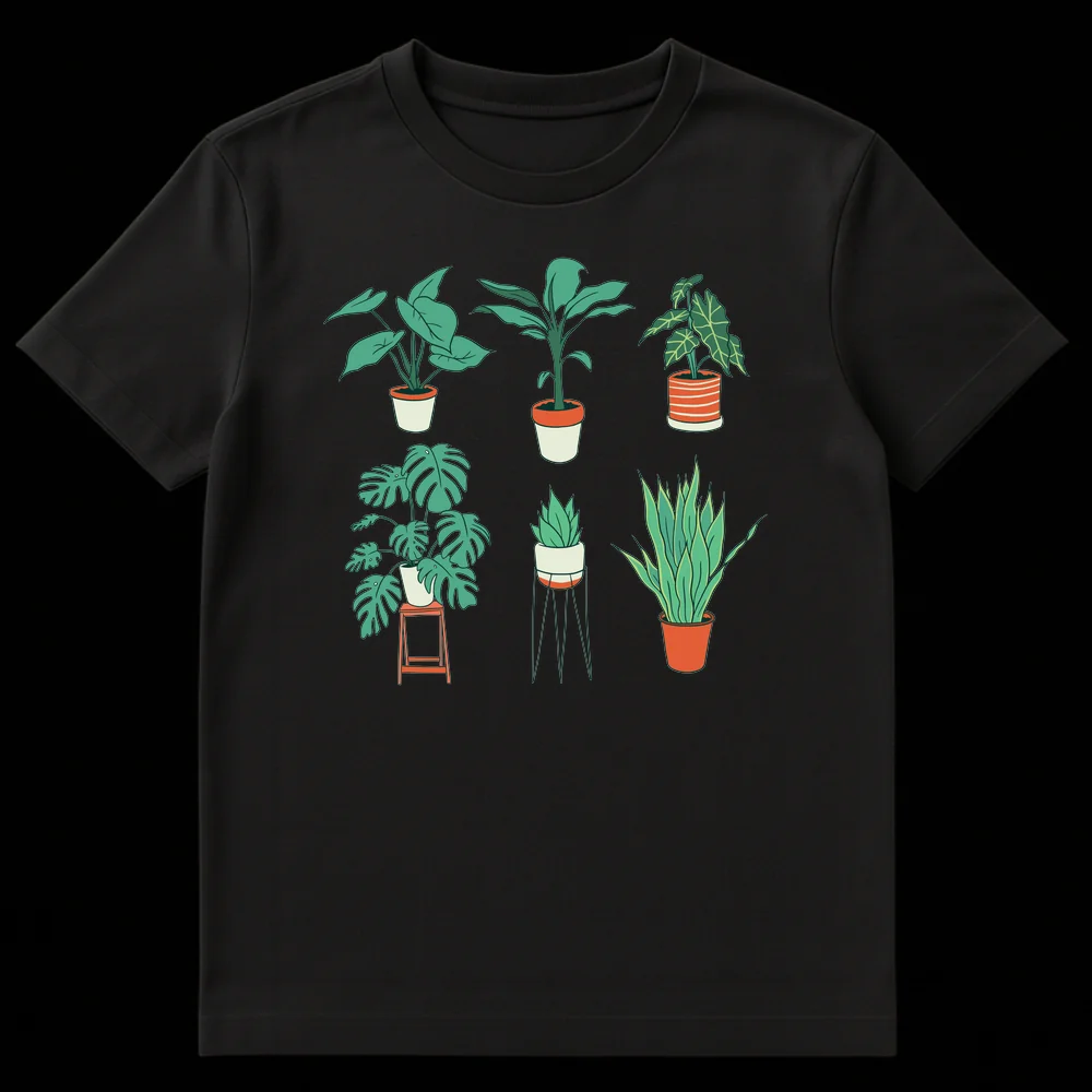 Embrace your love for greenery with this stylish houseplant collection t-shirt. Featuring six popular potted plants in a modern minimalist style, this design captures the essence of indoor gardening and plant parenthood. It’s the perfect way to show off your botanical pride or an ideal gift for any plant mom, plant dad, or nature lover.