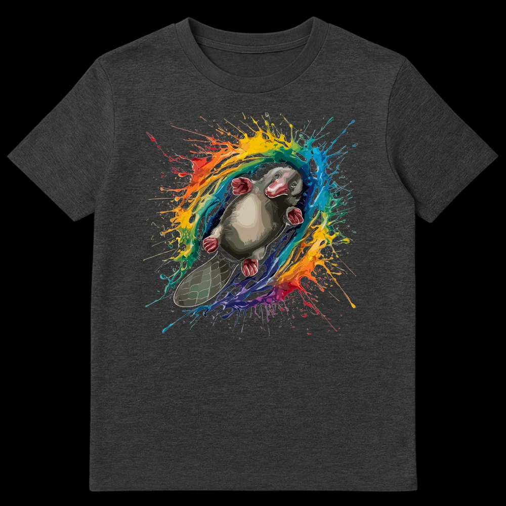 Dive into vibrant style with our eye-catching platypus t-shirt. This unique design features a whimsical platypus surrounded by an explosion of dynamic rainbow paint splashes, making it a standout piece for any animal lover. Celebrate the quirky charm of nature with this expressive, colorful artwork. It’s the perfect gift for zoology enthusiasts, nature lovers, or anyone who appreciates distinctive animal-themed apparel.