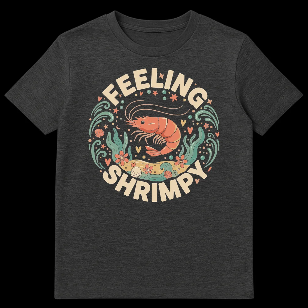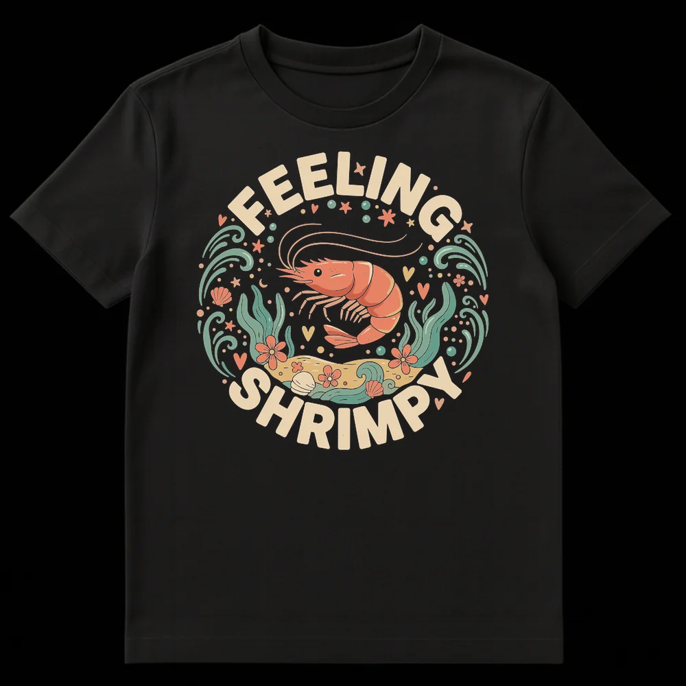Dive into playful style with our “Feeling Shrimpy” t-shirt, featuring an adorable retro-inspired cartoon shrimp in a charming underwater scene. This design cleverly plays on the idiom “feeling small,” transforming it into a whimsical pun for marine life enthusiasts. It’s the perfect lighthearted gift for anyone who appreciates clever wordplay and cute ocean-themed apparel.