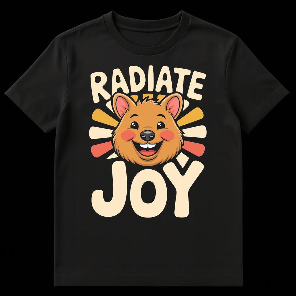 Embrace pure happiness with our “RADIATE JOY” Quokka T-Shirt! This design features the world’s happiest animal, the Quokka, with a beaming smile and vibrant sun rays, perfectly embodying its positive message. It’s a cheerful reminder to spread good vibes and find joy in every day. Perfect for animal lovers, positivity seekers, or anyone needing a feel-good boost.