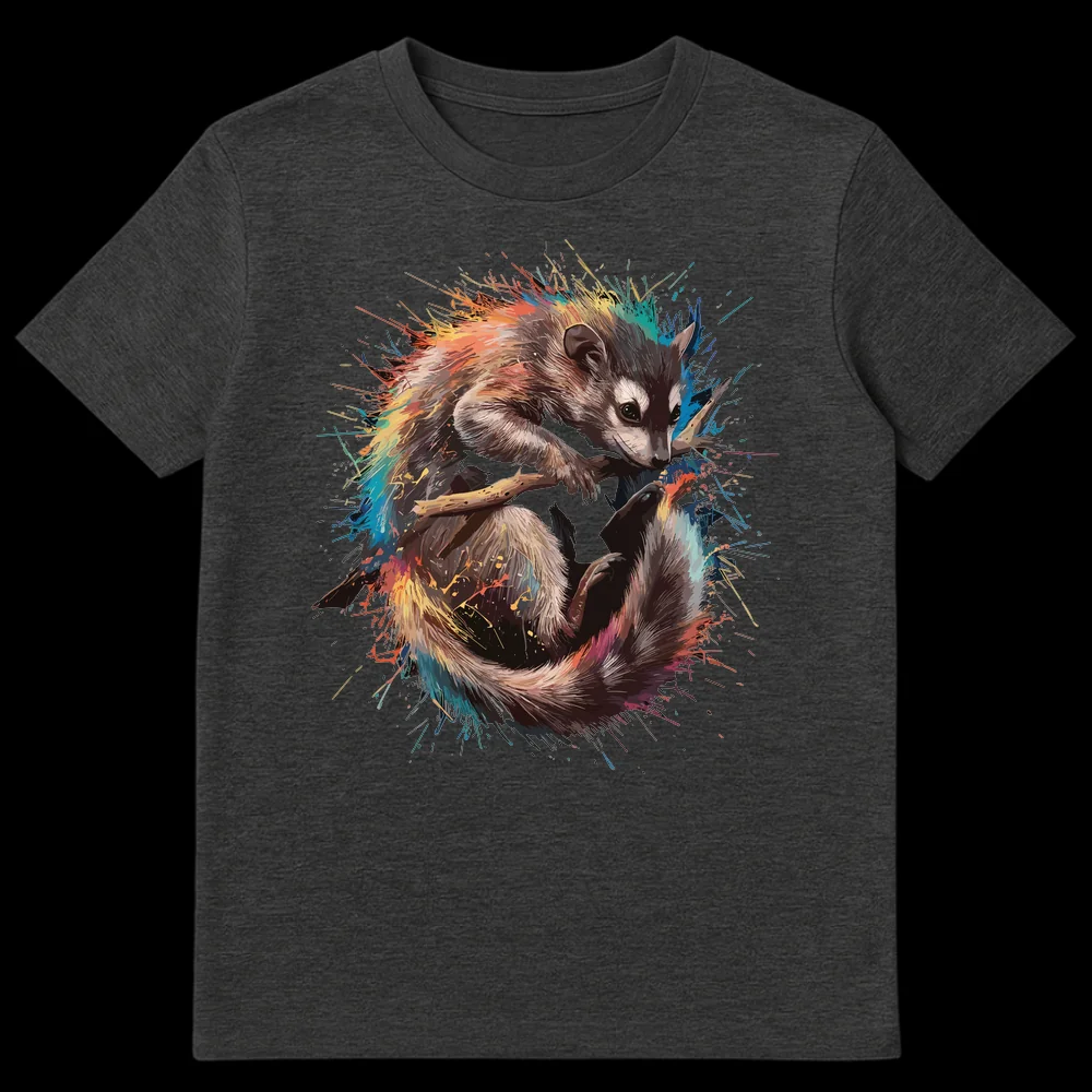 Embrace your wild side with our captivating Colorful Splatter Raccoon T-shirt, a true masterpiece of wearable art. This design beautifully merges the natural charm of a raccoon, depicted in a watchful pose on a tree branch, with a stunning explosion of vibrant, multicolor paint splashes. The unique splatter art style transforms a beloved forest creature into a dynamic, energetic visual statement, making this t-shirt stand out from the crowd. Crafted on a deep black background to make the rainbow hues pop, it’s a celebration of wildlife presented through a modern, artistic lens. This isn’t just a shirt; it’s an expression of individuality and an appreciation for art and nature combined. It makes a fantastic gift for raccoon enthusiasts, wildlife art collectors, and anyone who loves expressive, unique graphic tees that ignite conversation and joy.