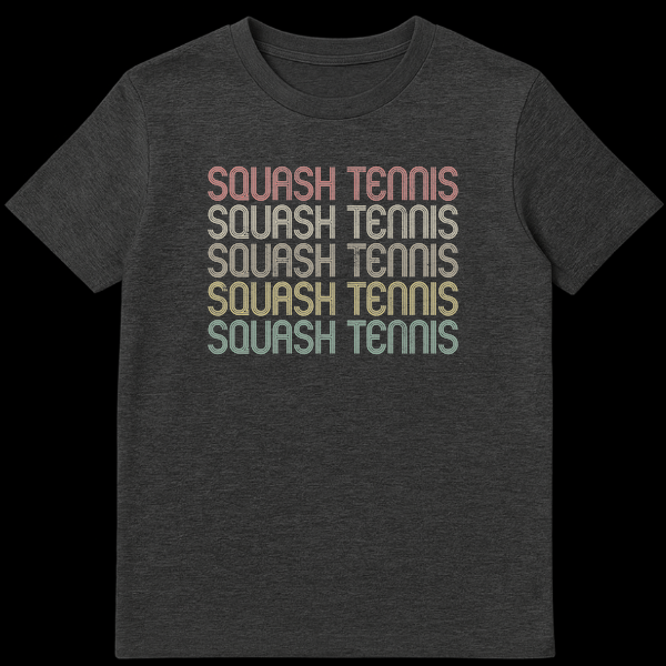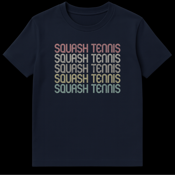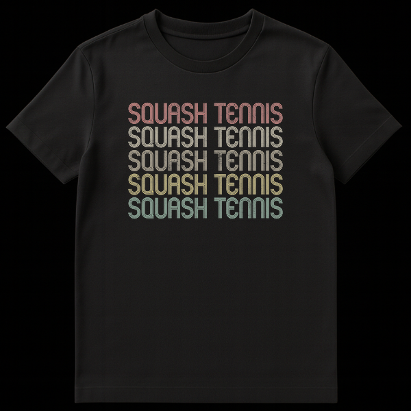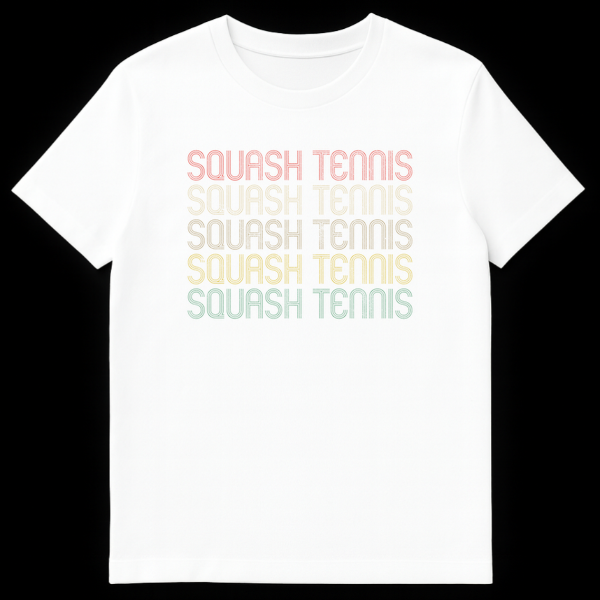Celebrate your passion for both squash and tennis with this uniquely designed t-shirt, declaring “SQUASH TENNIS” in a repeating, eye-catching pattern. The typography itself is a nod to classic athletic apparel, featuring a distinctive multi-line font with a subtly distressed texture that enhances its aged, retro appeal. Each line of text cycles through a muted, vintage-inspired color palette, ranging from coral to teal, making this tee a stylish standout. It’s more than just a shirt; it’s a statement for those who appreciate the skill and joy of court sports, presented through a lens of 70s and 80s nostalgia. This makes it an ideal, thoughtful gift for any squash player, tennis enthusiast, or coach looking for apparel that combines their love for the game with a timeless aesthetic. It’s designed for comfort and style, perfect for casual wear, whether you’re off the court or simply showcasing your sporting pride.