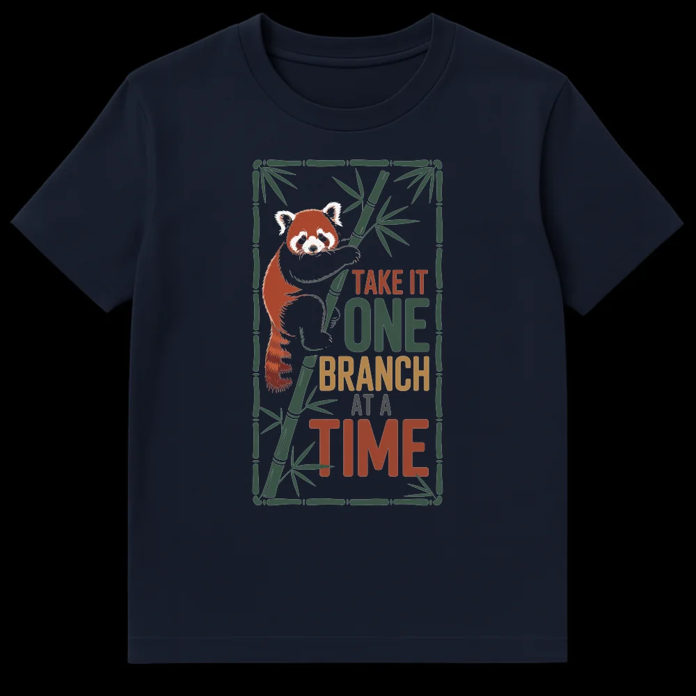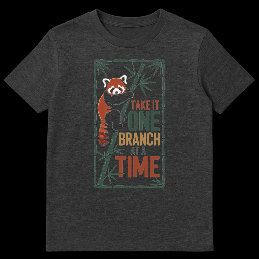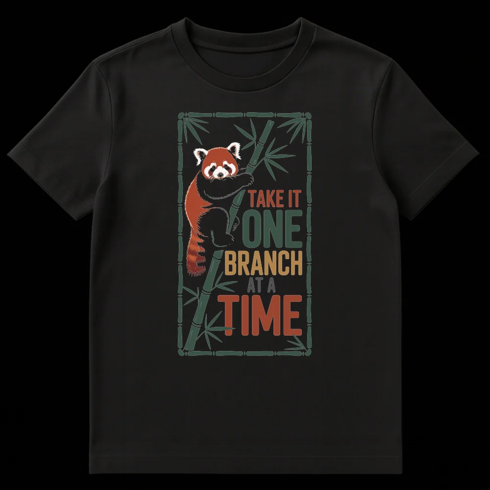 Navigate life’s journey with a smile and our delightful Red Panda “Take It One Branch At A Time” T-shirt. This design features an adorable red panda clinging to bamboo, playfully illustrating the popular motivational phrase. It’s a whimsical reminder to tackle goals incrementally, fostering patience and reducing stress. Ideal for animal lovers, particularly red panda admirers, and anyone who appreciates encouraging messages and nature-inspired apparel. Gift this unique tee to friends, family, or colleagues facing new ventures, study challenges, or simply needing a positive daily affirmation. It’s more than a shirt; it’s a wearable message of gentle perseverance.
