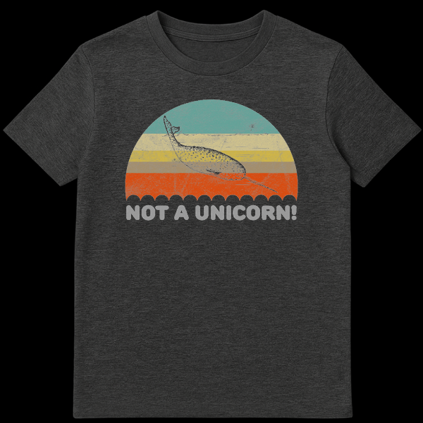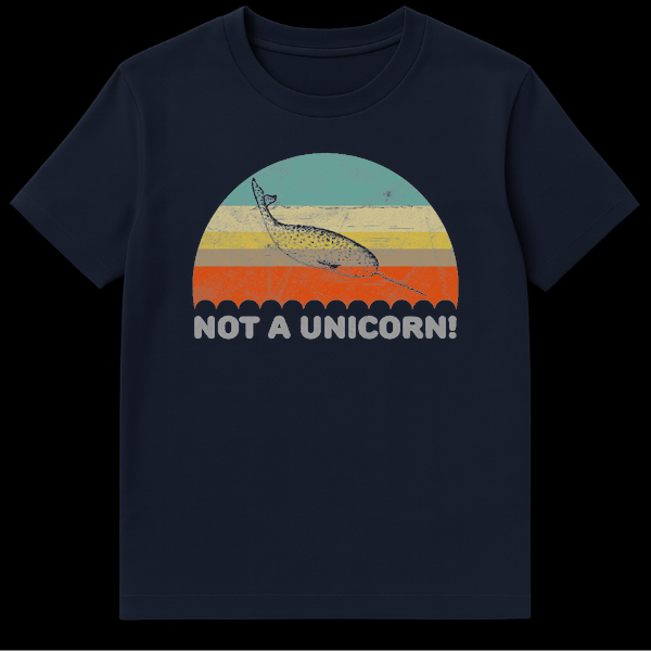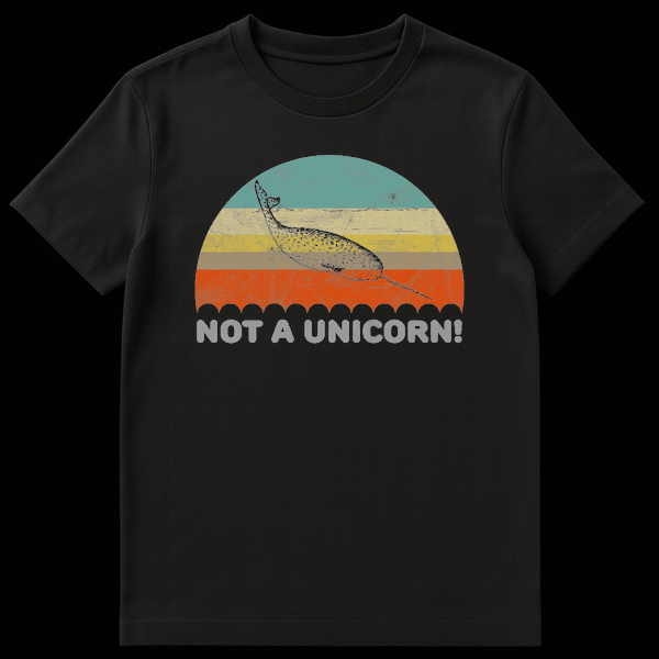 Show off your love for the unicorn of the sea with this hilarious retro narwhal design. Featuring a vintage sunset aesthetic and the witty caption “NOT A UNICORN!”, this shirt playfully corrects the common myth about these majestic sea creatures. It makes a perfect gift for marine biologists, ocean lovers, and anyone who appreciates sarcastic animal humor.