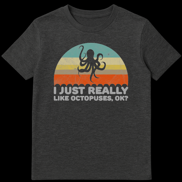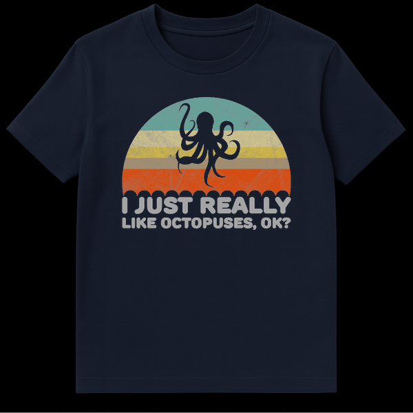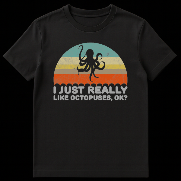 Dive into retro vibes with this vintage-inspired octopus design, featuring a classic 70s sunset palette and a distressed aesthetic. The humorous slogan “I Just Really Like Octopuses, Ok?” perfectly captures the unapologetic enthusiasm of marine life lovers. This makes a fantastic gift for biology students, aquarium fans, or anyone obsessed with these clever cephalopods.