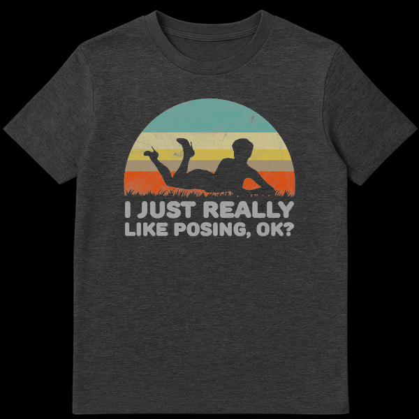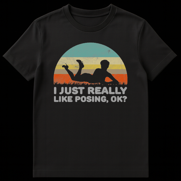 Embrace your inner model with this hilarious ‘I Just Really Like Posing, Ok?’ tee. Featuring a classic pin-up silhouette against a vibrant vintage sunset, this design blends retro aesthetics with a cheeky attitude. It’s the perfect gift for aspiring models, photography lovers, or anyone who can’t resist striking a dramatic pose for the camera.