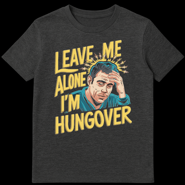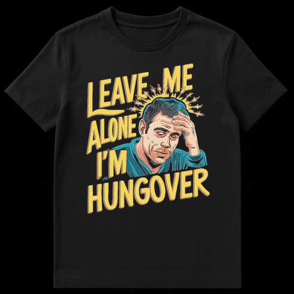 Struggle through the morning after in style with our ‘Leave Me Alone I’m Hungover’ T-shirt. This design perfectly captures that pounding headache feeling with a retro, comic book pop art aesthetic that screams vintage cool while demanding silence. The bold yellow typography and stylized illustration of a suffering man clutching his head make a relatable statement for anyone who enjoyed the night before a little too much. Whether you are recovering from a bachelor party, a wild weekend, or just a heavy night out, this shirt does the talking so you don’t have to. It is an ideal gag gift for drinking buddies, college friends, or the life of the party who always pays for it the next day. Wear your recovery with a sense of humor.