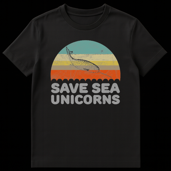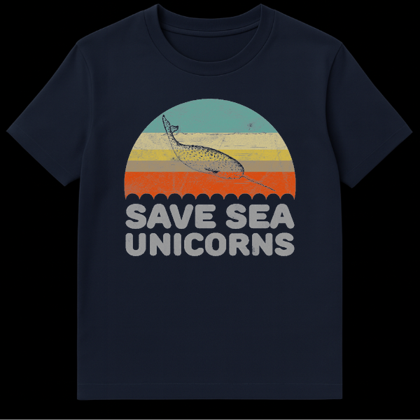 Celebrate the quirky charm of the ocean’s most magical creature with this retro-inspired narwhal design. Featuring a cool vintage sunset and the playful slogan “Save Sea Unicorns,” this graphic captures the whimsical nature of these unique whales. It makes a perfect, humorous gift for marine biologists, ocean lovers, and anyone who believes in a little bit of sea magic.