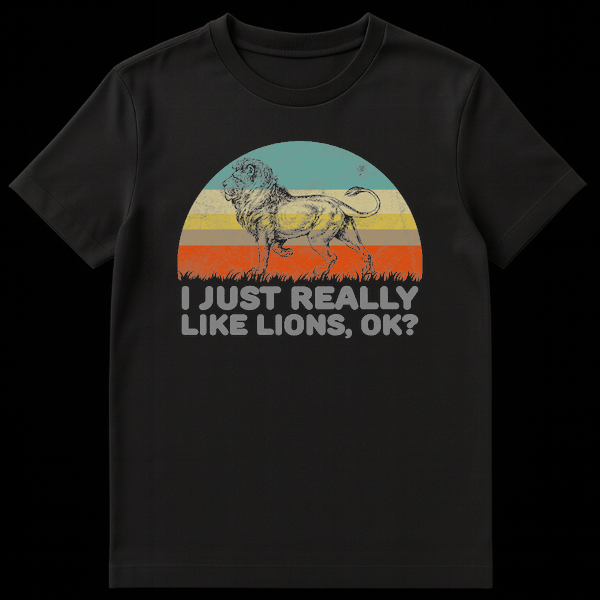 Embrace your wild side with our “I Just Really Like Lions, Ok?” graphic tee. This design blends a nostalgic 1970s aesthetic with modern humor, featuring a beautifully hand-drawn lion walking through tall grass against a distressed, multi-colored retro sunset. The vintage etching style of the illustration adds a sophisticated touch, while the bold, sarcastic text keeps it lighthearted and fun. It’s the ultimate wardrobe addition for introverts who prefer animals to people, safari enthusiasts, or proud Leos. Whether you are heading to the zoo or just lounging at home, this shirt lets everyone know exactly where your loyalties lie. Perfect as a birthday or holiday gift for the lion-obsessed friend in your life.