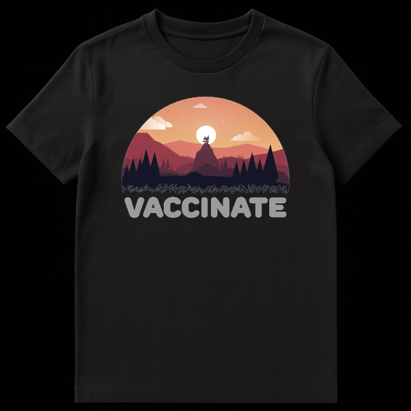 Showcase your support for public health with a touch of retro outdoor charm. This unique design blends a classic sunset mountain landscape with the bold message “VACCINATE,” creating a clever juxtaposition between nature and science. It makes a thoughtful gift for hikers, healthcare workers, and science enthusiasts who love the great outdoors.