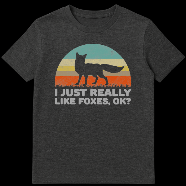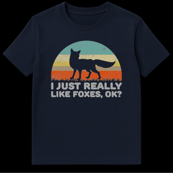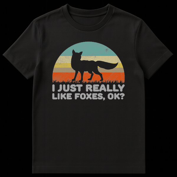 Step up your casual wardrobe with this uniquely stylish Fox Lover T-Shirt, designed for anyone who can’t get enough of these cunning woodland animals. The centerpiece of this shirt is a classic, distressed vintage sunset aesthetic, layering muted stripes of teal, beige, and orange to create a warm, retro 1970s vibe. Superimposed over this nostalgic backdrop is a sharp black silhouette of a fox standing proudly in the grass. Beneath the artwork, the bold, weathered text reads, “I JUST REALLY LIKE FOXES, OK?”—a humorous and direct declaration for those who don’t need a reason to love wildlife. This tee makes a fantastic birthday or holiday gift for zookeepers, nature hikers, animal rescuers, or that one friend who just really, really likes foxes. It combines old-school cool with a fun, relatable message.