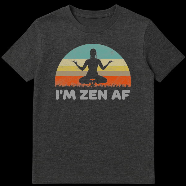 Channel your inner peace with a touch of humor in this ‘I’m Zen AF’ retro sunset graphic tee. Featuring a distressed 70s vintage style sun and a meditating silhouette, this design perfectly balances spiritual calm with modern slang. It’s the ultimate funny yoga shirt for meditation enthusiasts who stay chill no matter the chaos.