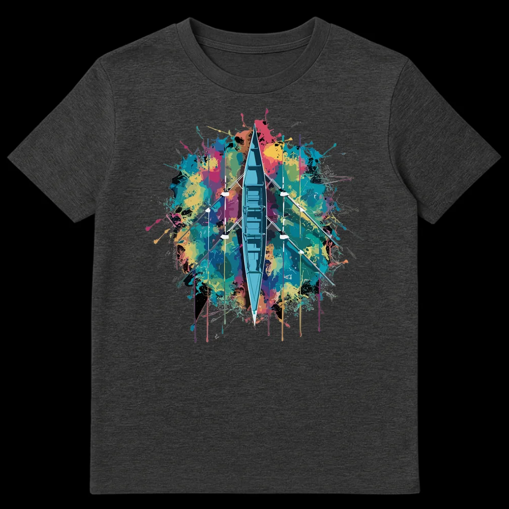 Celebrate the powerful energy of crew with this vibrant rowing t-shirt. Featuring a stylized rowing shell amidst an explosion of colorful paint splatters, this design captures the dynamic spirit of the water. It’s a perfect gift for rowers, crew team members, and any watersports enthusiast who loves unique athletic art.