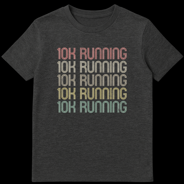 Declare your passion for the track with this 10K RUNNING t-shirt, repeating your dedication in a cool retro 70s/80s style. The multi-line, distressed typeface and vintage color gradient celebrate your running obsession. It’s the perfect gift for any dedicated 10K runner, making a bold statement about their commitment to the sport.