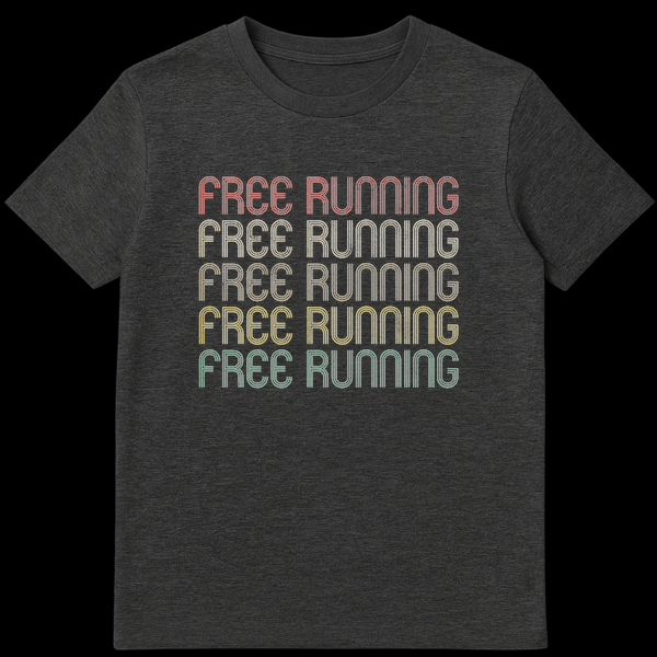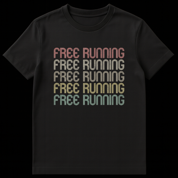 Embrace the spirit of unbridled motion with our “FREE RUNNING” t-shirt. This design celebrates the joy of movement, featuring a stacked, rhythmic phrase that resonates with runners, parkour enthusiasts, and anyone who cherishes an active, free-spirited lifestyle. It makes an ideal gift for athletes and vintage fashion lovers alike.