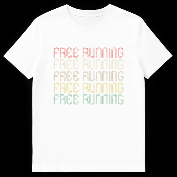 Channel your inner explorer with the “FREE RUNNING” t-shirt, a design that speaks to the heart of every runner and movement enthusiast. The stacked, repetitive text in a distinctive retro-inspired, multi-line font creates a hypnotic visual rhythm, symbolizing continuous motion and liberation. Each line features a unique, desaturated retro color—from muted coral pink to khaki green—enhanced with a distressed texture for that perfect vintage feel. This design subtly plays on the dual meaning of “freerunning” as both an athletic discipline and a state of being, evoking a powerful sense of freedom. It’s the perfect gift for dedicated runners, parkour practitioners, fitness buffs, or anyone who appreciates iconic 70s/80s athletic aesthetics and a comfortable, stylish statement piece.