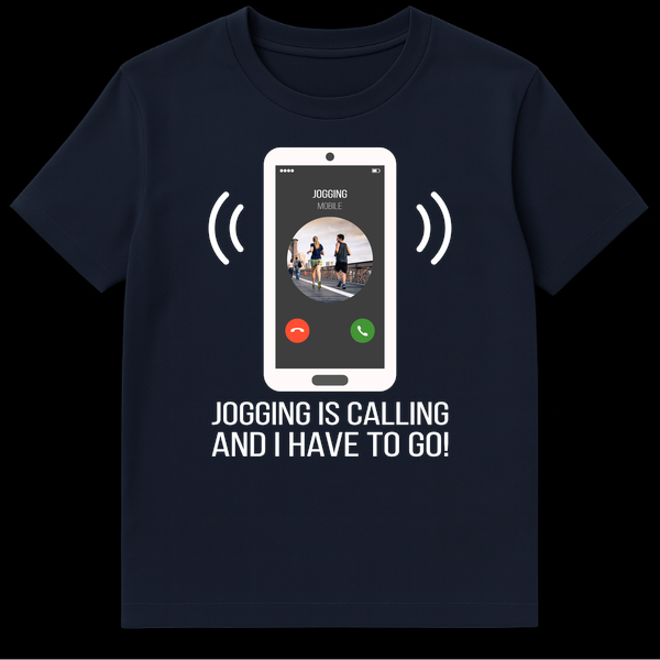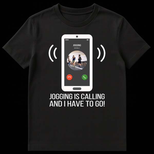 Embrace your passion for pounding the pavement with this clever jogging t-shirt. Featuring a smartphone screen displaying an ‘incoming call’ from “JOGGING MOBILE,” complete with an image of runners on a bridge, this design is perfect for anyone who prioritizes their run. The playful slogan “JOGGING IS CALLING AND I HAVE TO GO!” humorously captures the irresistible pull of your next workout. It’s an ideal gift for dedicated runners, joggers, and fitness lovers.