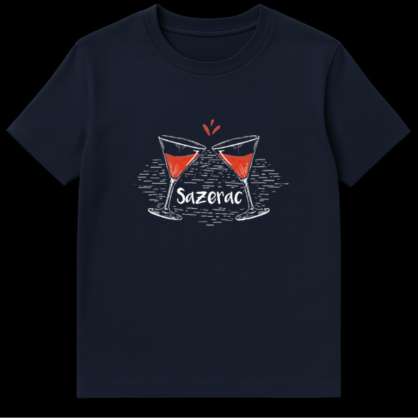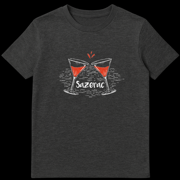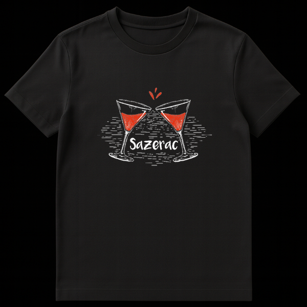 Raise a glass to the official cocktail of New Orleans with this unique Sazerac graphic. Designed for the true cocktail connoisseur, this artwork features a hand-drawn, chalk-style sketch of two stemmed glasses clinking in a celebratory cheers. The design captures the essence of the famous NOLA drink with a pop of vibrant reddish-orange color representing the Peychaud’s Bitters, contrasting beautifully against the rustic white cross-hatching. Whether you are strolling down Bourbon Street, visiting the French Quarter, or mixing rye whiskey at home, this apparel is a stylish nod to mixology history. This design makes an excellent gift for bartenders, mixologists, fathers, and fans of the Big Easy drinking culture.