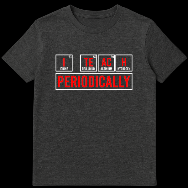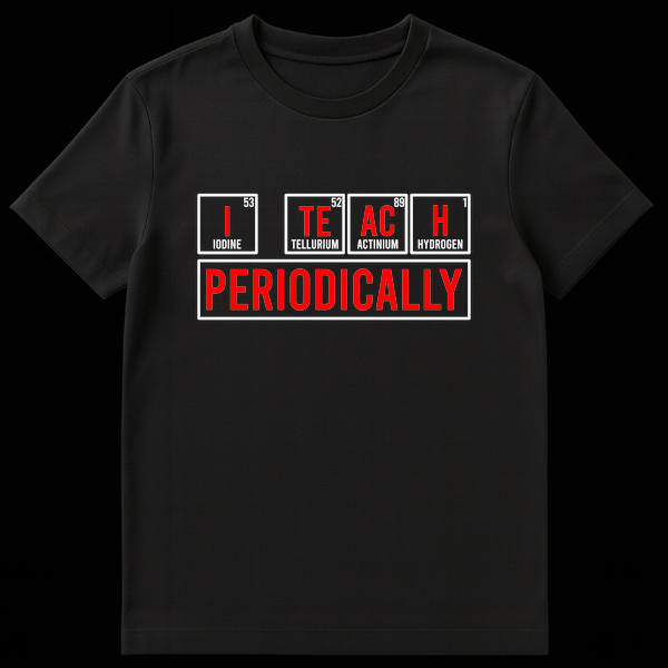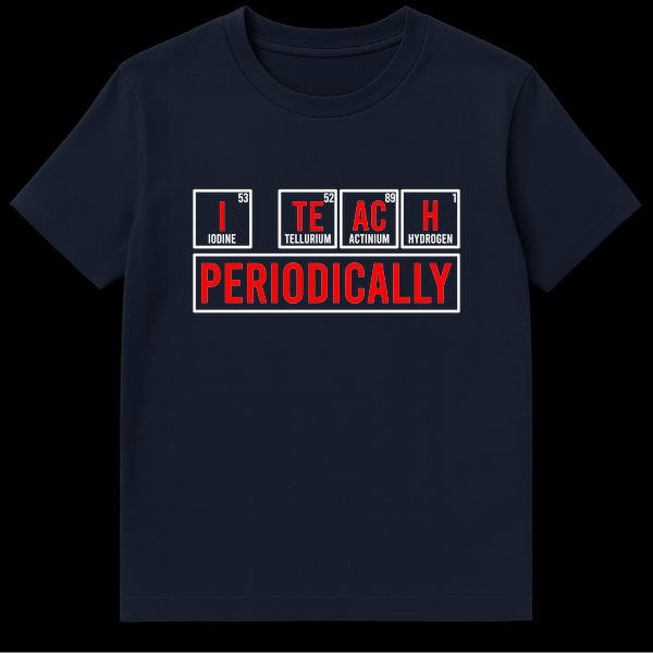 Show off your love for science and a good pun with our exclusive ‘I TEACH PERIODICALLY’ t-shirt. This design isn’t just a witty phrase; it’s a clever nod to the very building blocks of the universe, spelling out the slogan using the actual chemical symbols for Iodine (I), Tellurium (Te), Actinium (Ac), and Hydrogen (H). It’s a subtle, intelligent joke that only true science enthusiasts, chemistry students, or educators will instantly appreciate, sparking conversations and smiles wherever you go. Whether you’re in the classroom, the lab, or just out and about, this shirt is a perfect blend of humor and intellect. It makes an excellent gift for that brilliant science teacher, a dedicated chemistry professor, an aspiring scientist, or anyone who enjoys the periodic table and a good laugh. Stand out with a design that’s as smart as it is stylish and let your passion for chemistry shine!