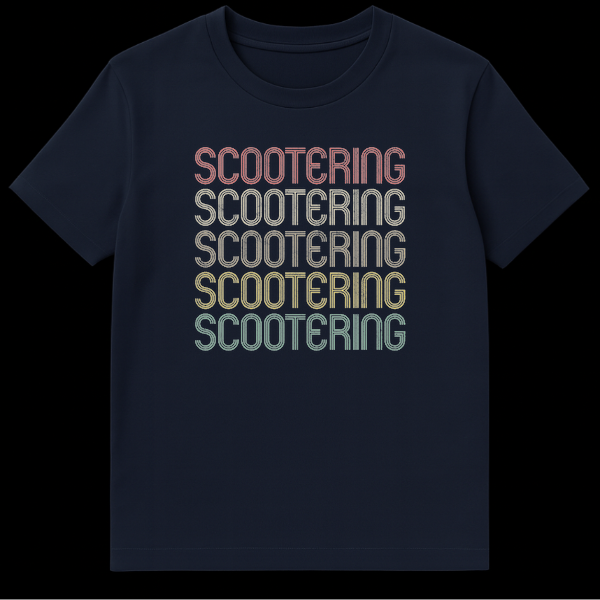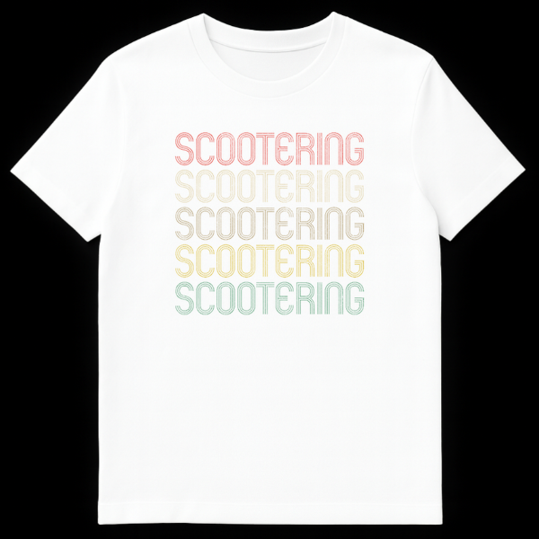 Ride in style and show off your two-wheeled obsession with this unique “SCOOTERING” t-shirt. The design brilliantly captures a deep affection for the activity, repeating “SCOOTERING” six times in a captivating, retro-inspired typography. Each line features a subtle, distressed texture and a vibrant, graduated vintage rainbow color palette, creating a nostalgic aesthetic reminiscent of classic screen prints. This tee isn’t just clothing; it’s a declaration of your lifestyle. Perfect for any scooter rider, whether they love kick scooters, electric models, or classic Vespas and Lambrettas. It makes an excellent gift for scooter enthusiasts, hobbyists, or anyone who appreciates a unique blend of vintage style and heartfelt passion for their favorite activity. Wear your passion with pride and retro flair!
