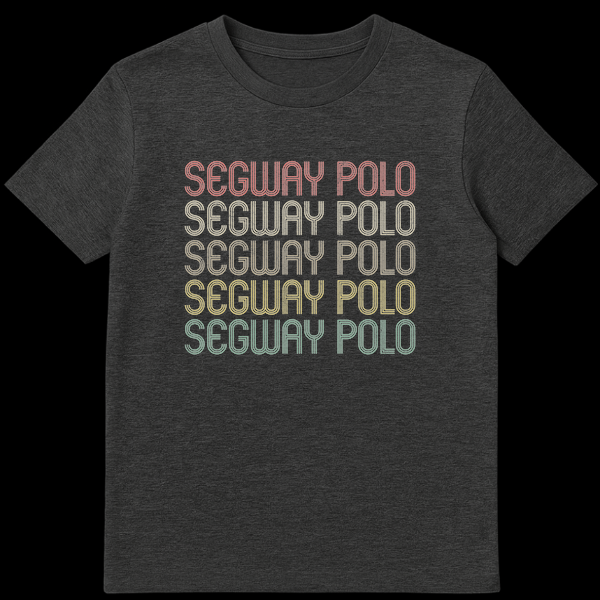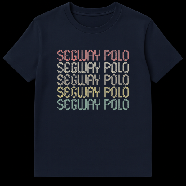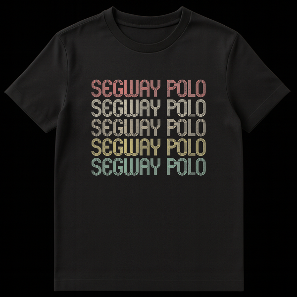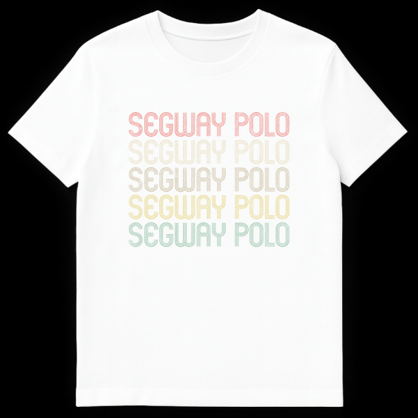 Embrace the eccentric charm of Segway Polo with this standout graphic t-shirt. The design prominently features “SEGWAY POLO” repeated five times, showcasing a cool, retro-vintage typographic style with a distinct distressed texture. This shirt isn’t just about text; it’s a nod to a real, albeit niche, sport that brings together the unexpected elements of the Segway transporter and the aristocratic game of polo. It’s a humorous commentary on technology meeting tradition, guaranteed to spark smiles and conversations. Perfect for those who enjoy ironic humor, quirky sports, or simply love a design that’s a little out of the ordinary. This tee makes an excellent gift for the humor enthusiast, the tech-curious, or anyone who appreciates a good, understated joke in their wardrobe.