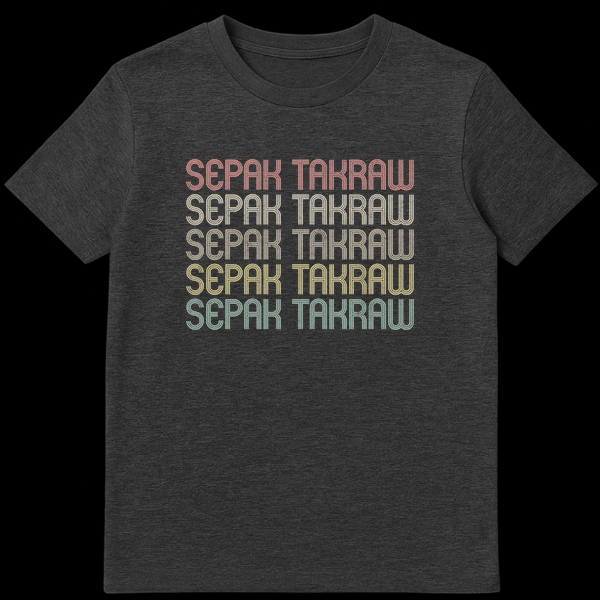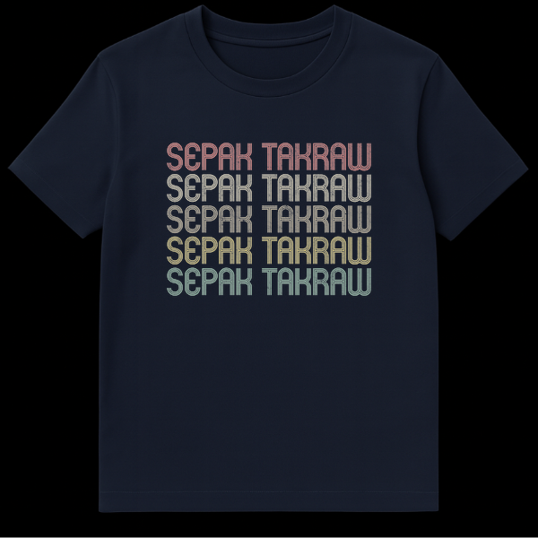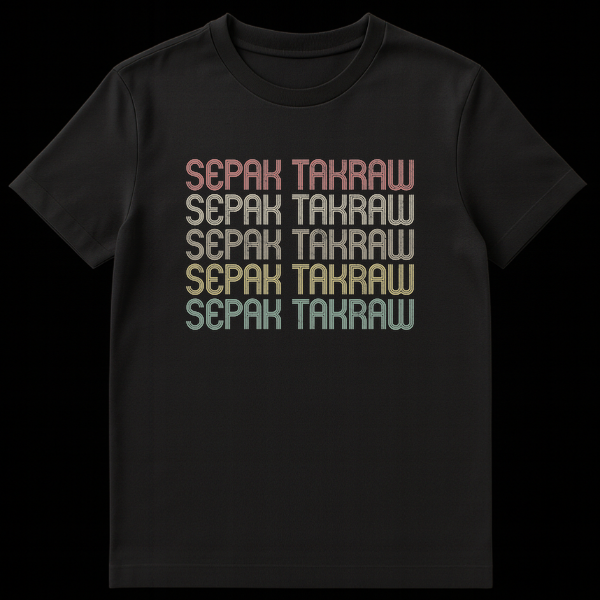 Embrace the spirit of kick volleyball with our striking Sepak Takraw t-shirt, featuring the sport’s name repeated in a bold, stacked retro typography. This design makes a powerful statement for fans and players, celebrating the tradition and energy of Sepak Takraw. It’s the perfect gift for anyone passionate about this unique Southeast Asian sport.