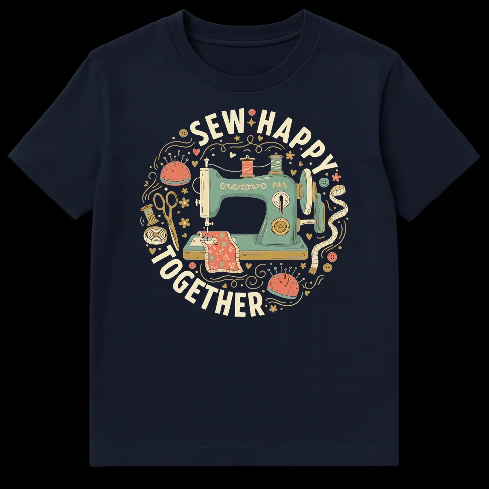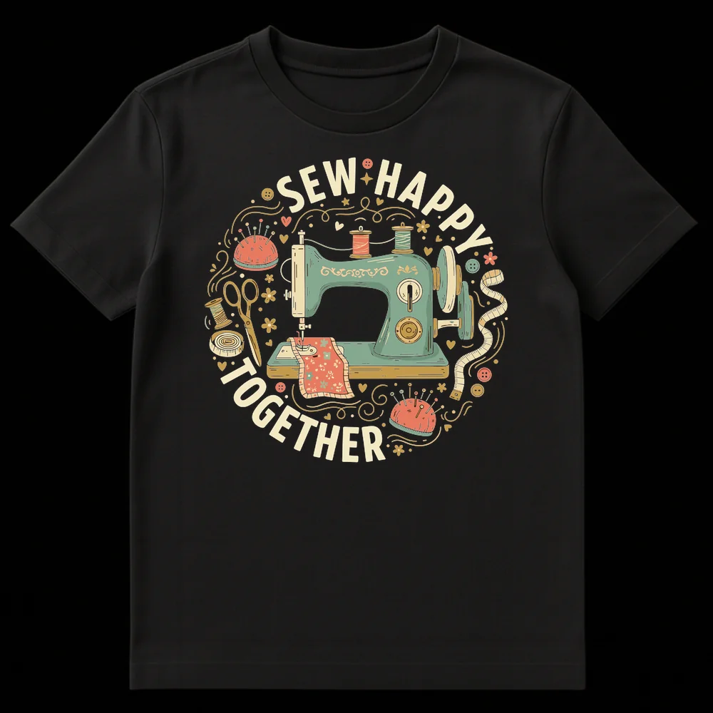Celebrate your love for crafting with our “SEW HAPPY TOGETHER” t-shirt, featuring a charming vintage sewing machine and vibrant notions. This clever design plays on words, perfect for anyone who finds joy and community in their needlework. It’s an ideal gift for quilters, crafters, and anyone who appreciates handmade happiness.