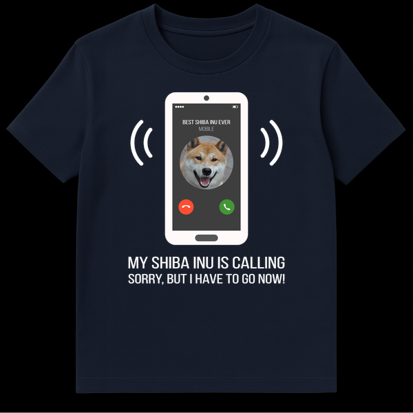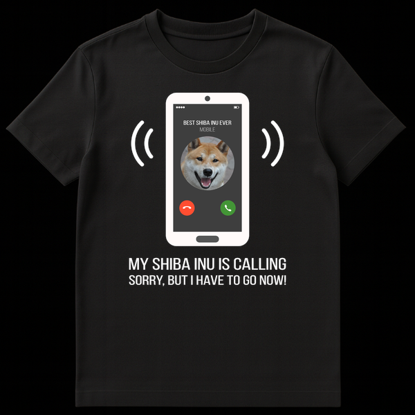 Celebrate your ultimate canine devotion with this hilarious t-shirt featuring a stylized smartphone ringing with a happy Shiba Inu on screen. The design captures the universal truth of every dog parent: when your Shiba Inu calls, everything else can wait. Perfect for anyone who loves their furry friend more than anything, making it a great gift for Shiba Inu moms and dads.