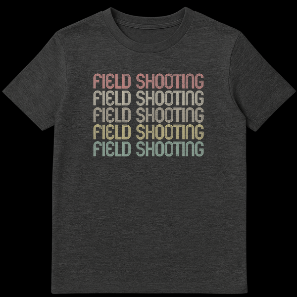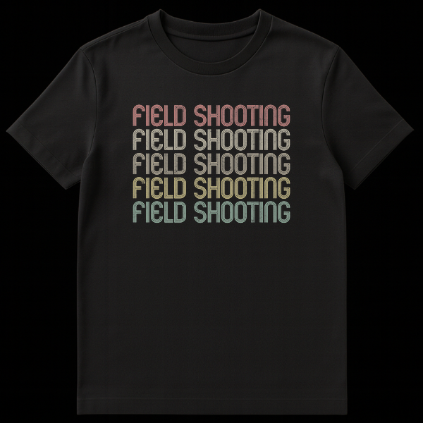 Embrace your passion for the range with our ‘FIELD SHOOTING’ t-shirt. This unique design features the phrase repeated in a cool, retro-inspired inline font with a distressed finish, giving it a classic, worn-in look. The striking vertical color gradient on a solid black background makes a bold statement. It’s the perfect gift for any shooting enthusiast, hunter, or target practice lover.