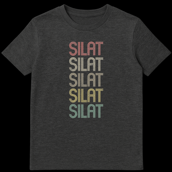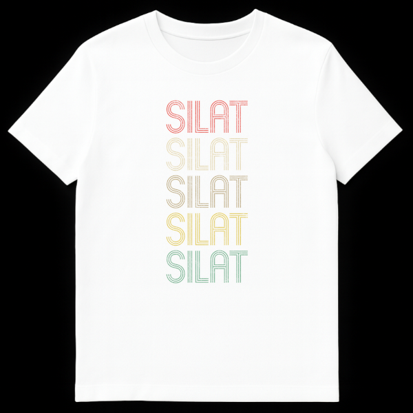 Declare your pride and passion for Pencak Silat with our distinctive “SILAT” repeated typography t-shirt. This design instantly transports you back to the retro 70s/80s with its vintage athletic and collegiate aesthetic. The iconic multi-line, parallel-stroke font with rounded terminals, characteristic of classic sportswear, is presented in a faded, warm gradient of muted coral, off-white, beige, goldenrod, and dusty teal. Each text element carries a subtle distressed texture, giving it the authentic feel of a time-honored print on a solid black background. This shirt isn’t just clothing; it’s a statement of identity, a nod to tradition, and a stylish way to represent your connection to the indigenous martial arts of the Malay Archipelago. Perfect for practitioners, students, instructors, or fans, it makes an ideal gift for anyone who values the cultural significance and enduring legacy of Silat. Celebrate your heritage and passion with this unique, lifestyle-oriented design.