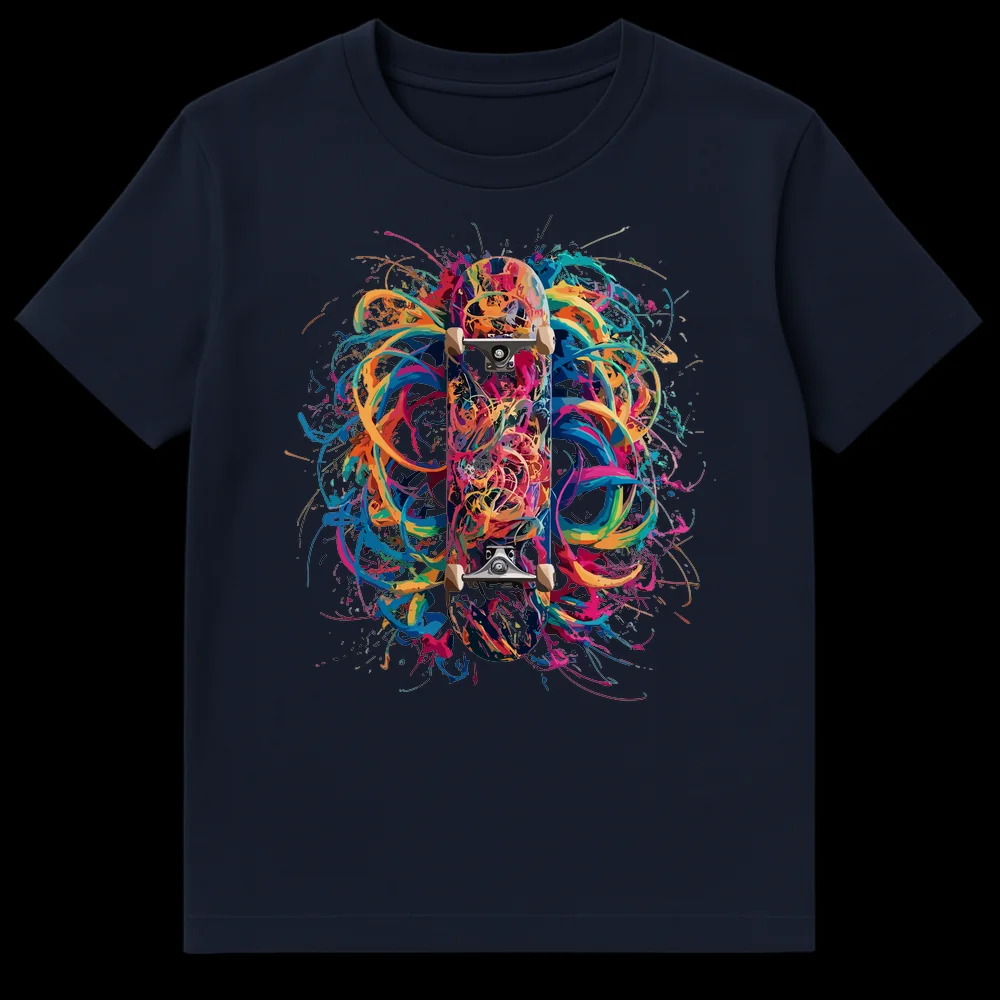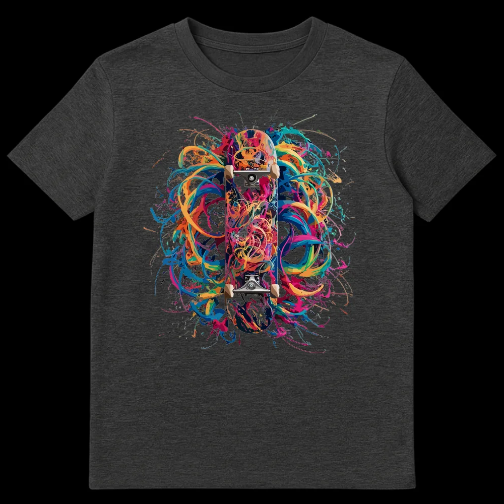 Unleash your inner skater with this electrifying tee featuring a skateboard engulfed in a dynamic explosion of neon paint splatters. This bold design embodies the energy and artistic spirit of skate culture, making a striking visual statement. It’s the perfect gift for any skateboarder, street art enthusiast, or anyone who loves vibrant, expressive style.