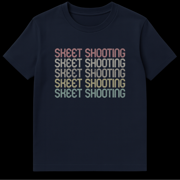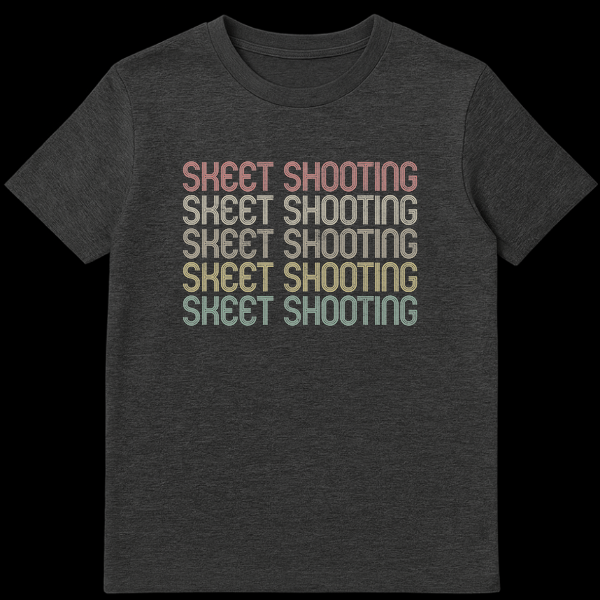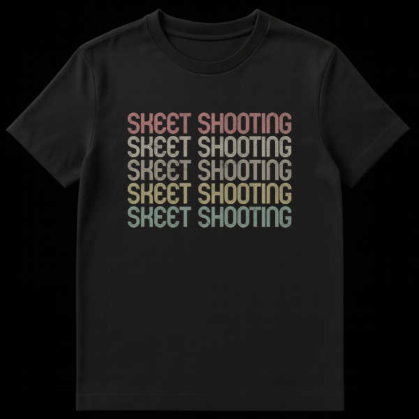 Declare your passion for the range with our Vintage Skeet Shooting T-Shirt. Featuring the iconic phrase repeated five times in a distressed, multi-line retro font, this design captures the nostalgic spirit of 70s/80s shooting sports. Its muted, earthy color palette pops against a classic black background. This tee is the perfect gift for any skeet shooting enthusiast, hunter, or lover of classic outdoor sports style.