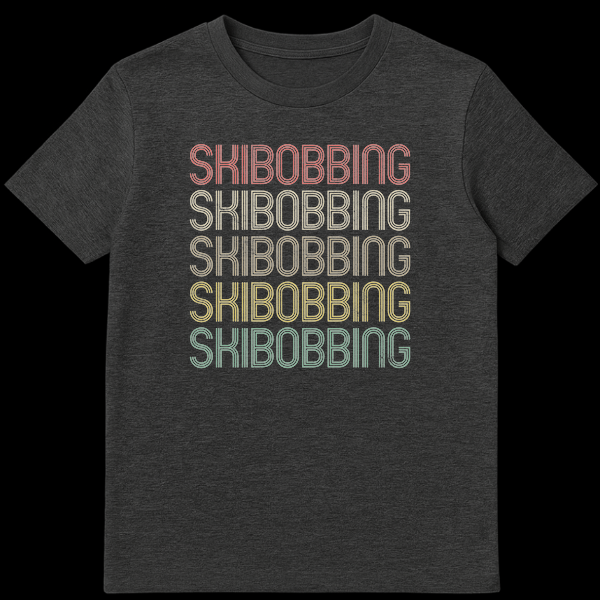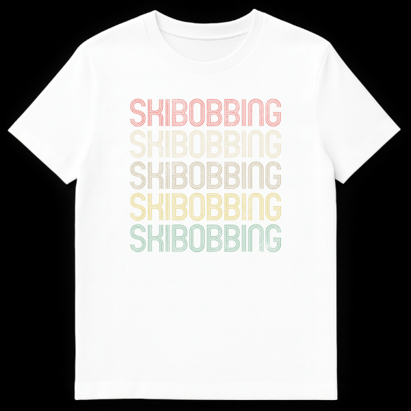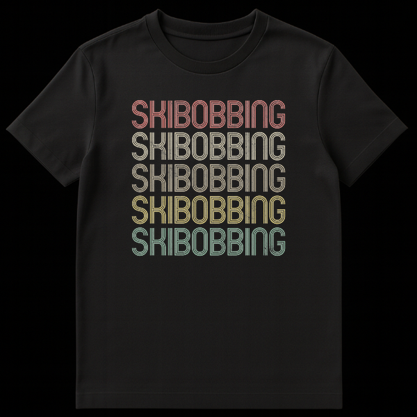 Embrace your passion for the slopes with this unique Skibobbing t-shirt. Featuring the word “SKIBOBBING” repeated five times in a distressed, multi-line retro font, it celebrates this niche winter sport with a cool vintage vibe. This design is perfect for skibobbing enthusiasts, winter sports lovers, or anyone who appreciates a classic, understated declaration of their favorite activity.